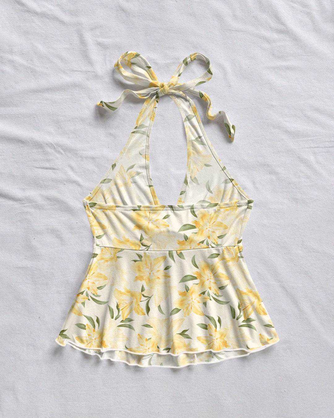 Casual V-Neck Bowknot Wrap Backless Floral Top is soft, feminine, and perfect for sunny-day styling. Designed with a flattering V-neckline and delicate bowknot detail at the front, this top enhances your shape while adding a romantic touch. The wrap-style silhouette flows beautifully, and the backless halter design ties at the neck for an adjustable, secure fit.