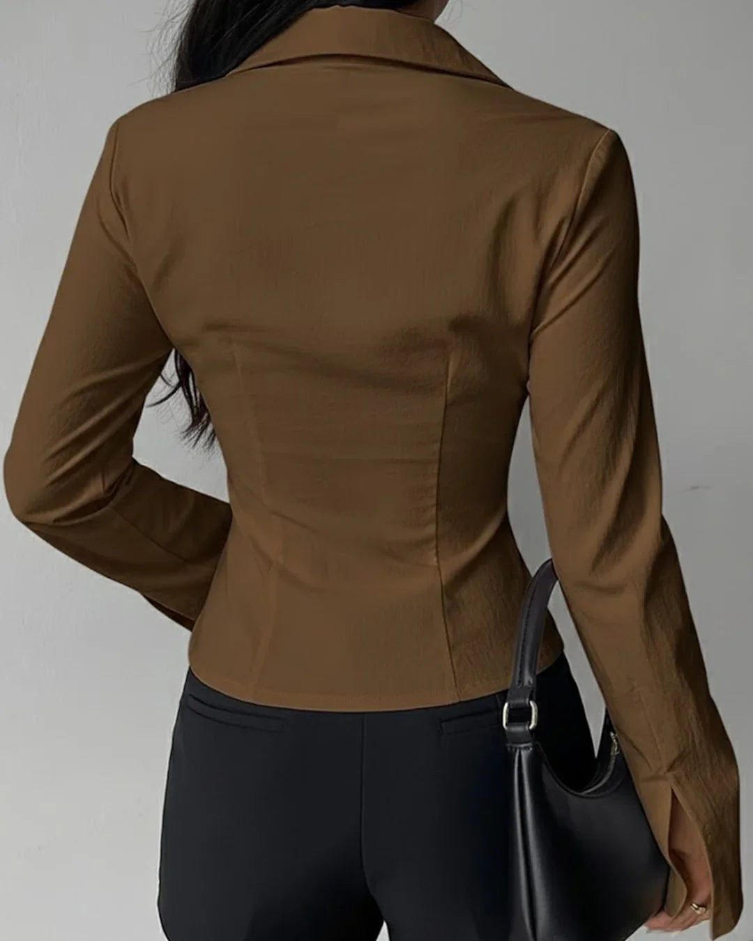This Collared V-Neck Slim Fit Straight Hem Ruched Waist Top works perfectly for office days, casual dinners, or smart-casual plans. It feels lightweight and comfortable on the skin, staying smooth and fitted through long hours. Easy to style and easy to wear, it fits right into a versatile wardrobe.