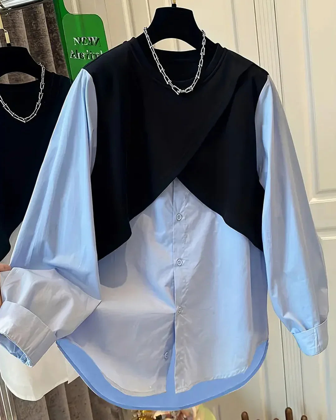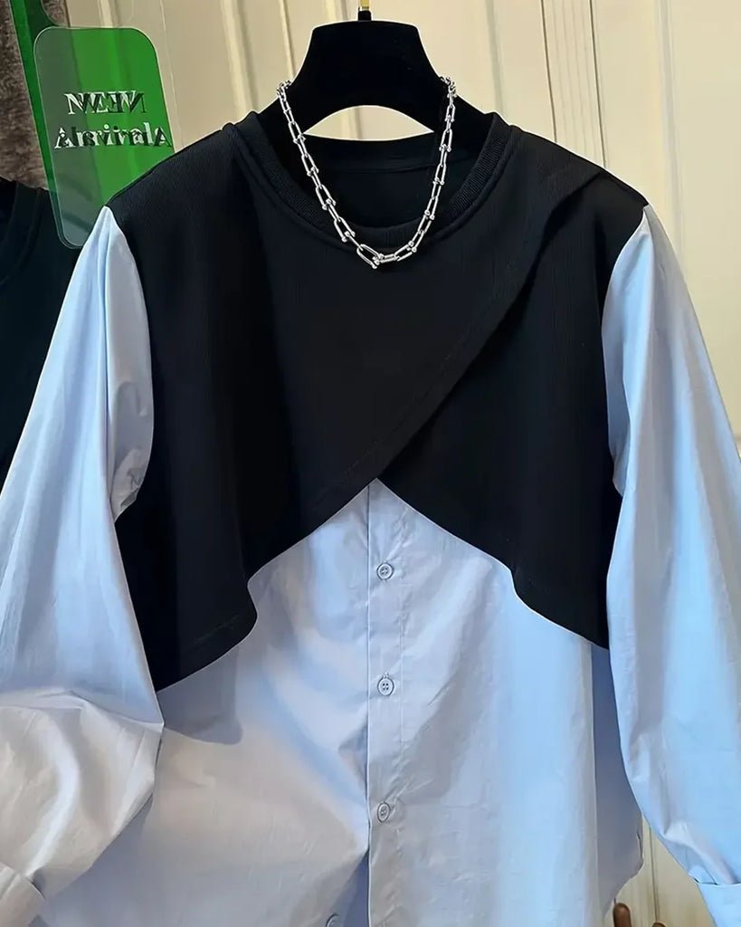 Contrast Panel Button Down Layered Full Sleeve Top