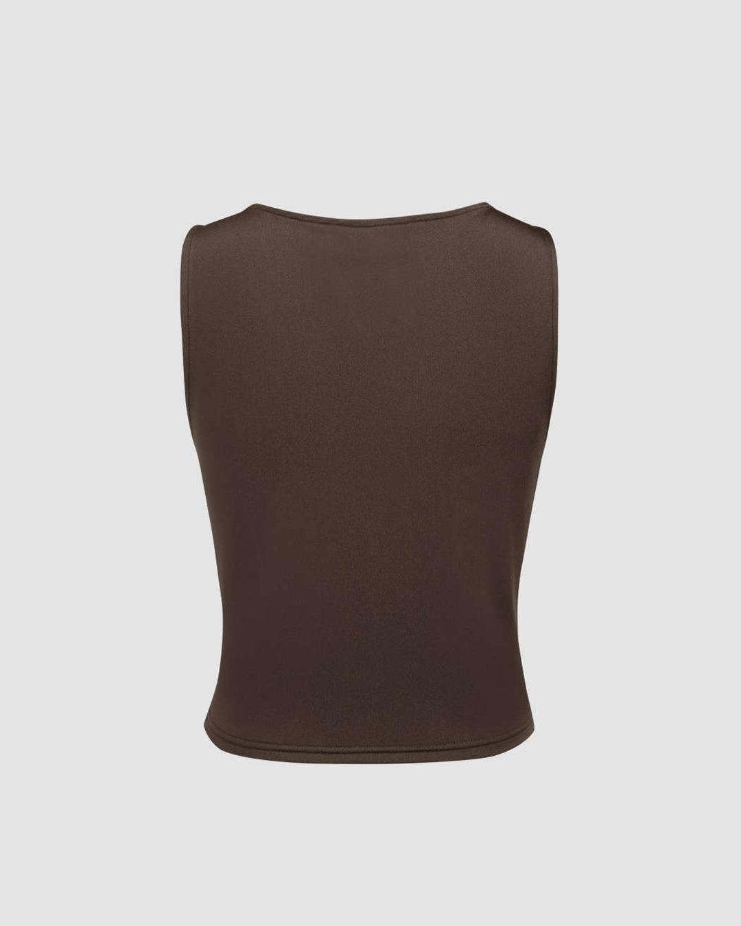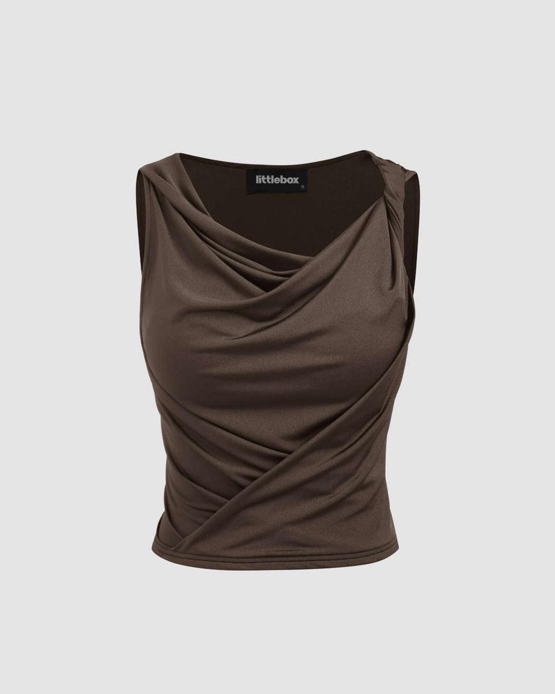 Party Cowl Neck Sleeveless Draped Top in Brown