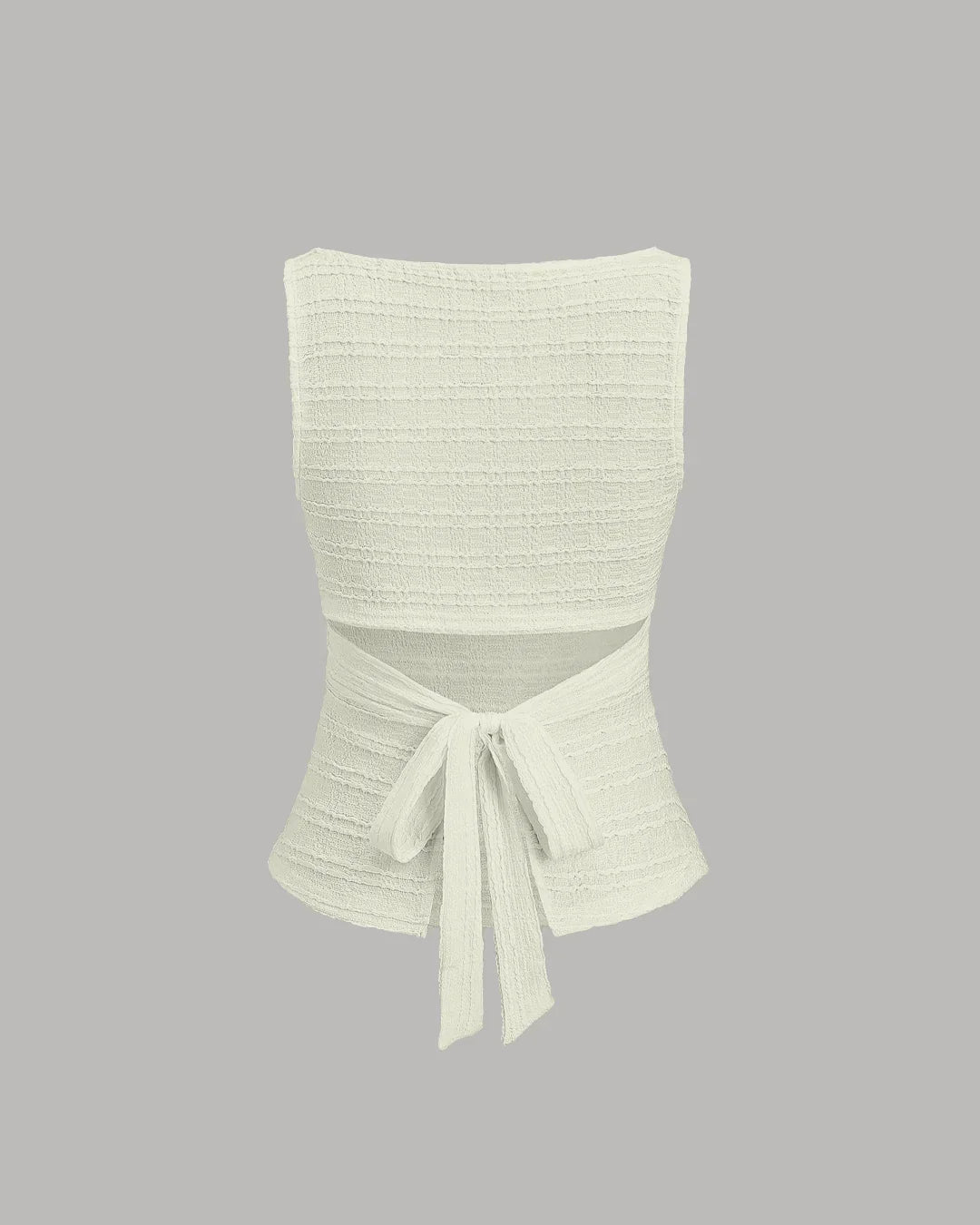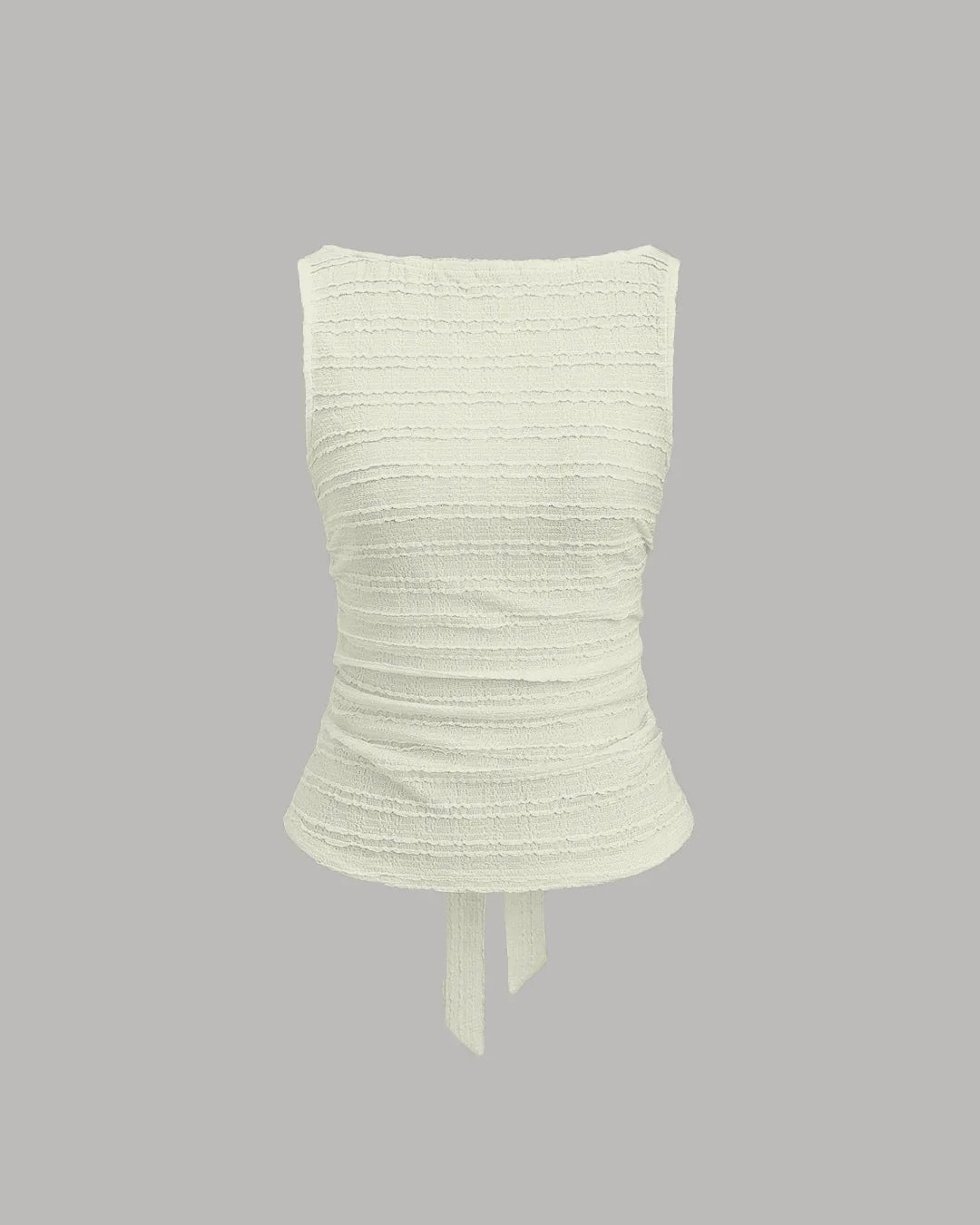 Ruched Sleeveless Back Tie Textured Top in White