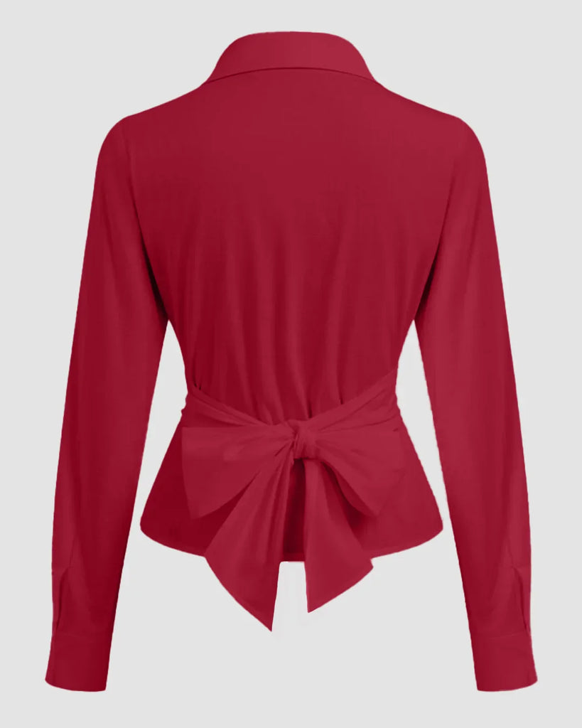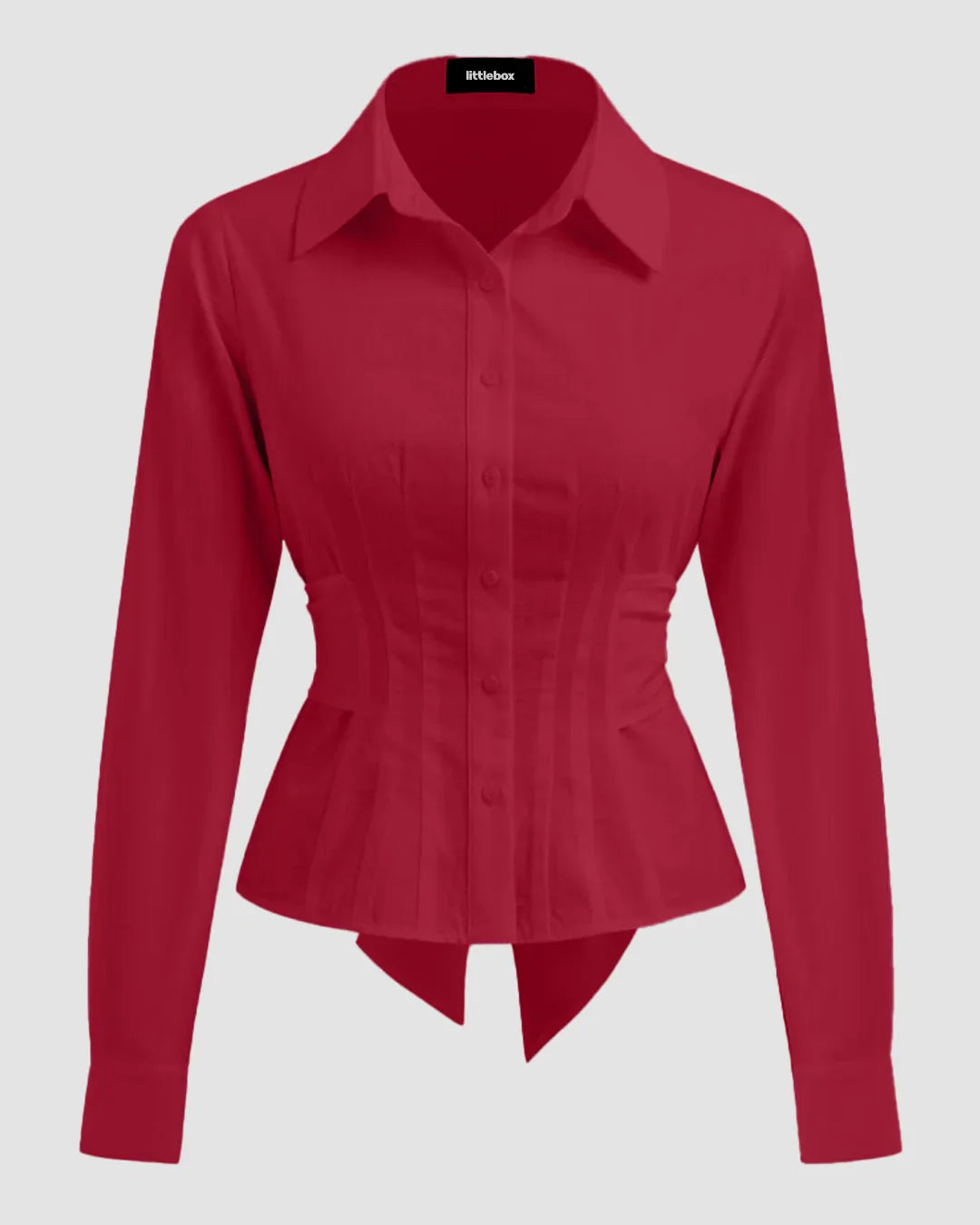 This collared button down shirt is where classic tailoring meets modern edge. The fitted waist and crisp collar create a clean, sculpted silhouette that feels both structured and feminine. Designed in a rich cherry hue, it adds a bold twist to the timeless button-down. Crafted from a polyester-elastane blend, this collared button down shirt offers slight stretch for comfort while maintaining a polished finish that holds its shape all day.