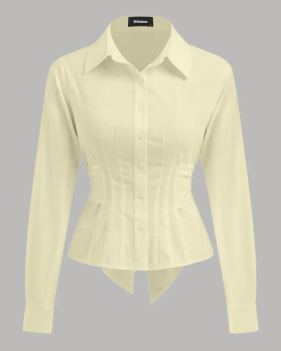 This collared button down shirt gives timeless polish with a modern silhouette. Designed with a tailored waist and structured cuffs, it shapes your frame while keeping the look effortlessly refined. The crisp collar and button-down front make it a wardrobe essential, while the slight stretch from the polyester-elastane blend adds comfort and flexibility. The soft vanilla tone brings an elevated touch, making this collared button down shirt easy to style for any mood or occasion.