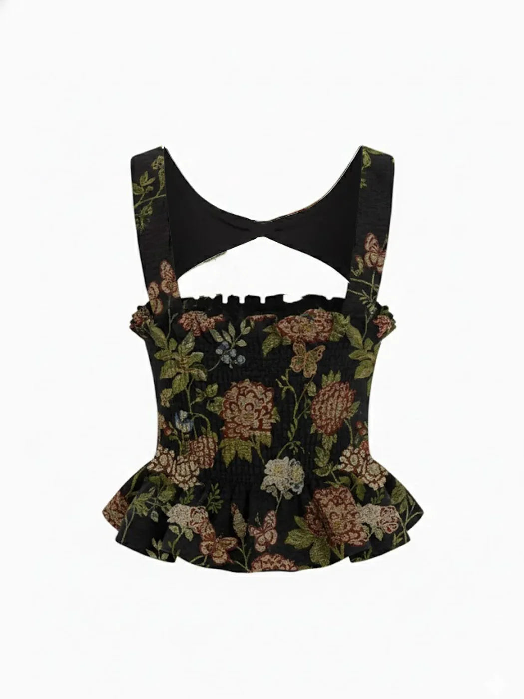 Jacquard Square Neck Floral Metal Detail Tank Top brings together structure, texture, and subtle statement details. Crafted in a rich jacquard fabric, this top features a clean square neckline with a sleek metal accent that adds a modern edge. The floral pattern keeps it soft and elevated, while the fitted silhouette hugs just right without feeling restrictive. Designed to sit neatly at the waist, this square neck tank top works perfectly for styled evenings as well as polished daytime looks.