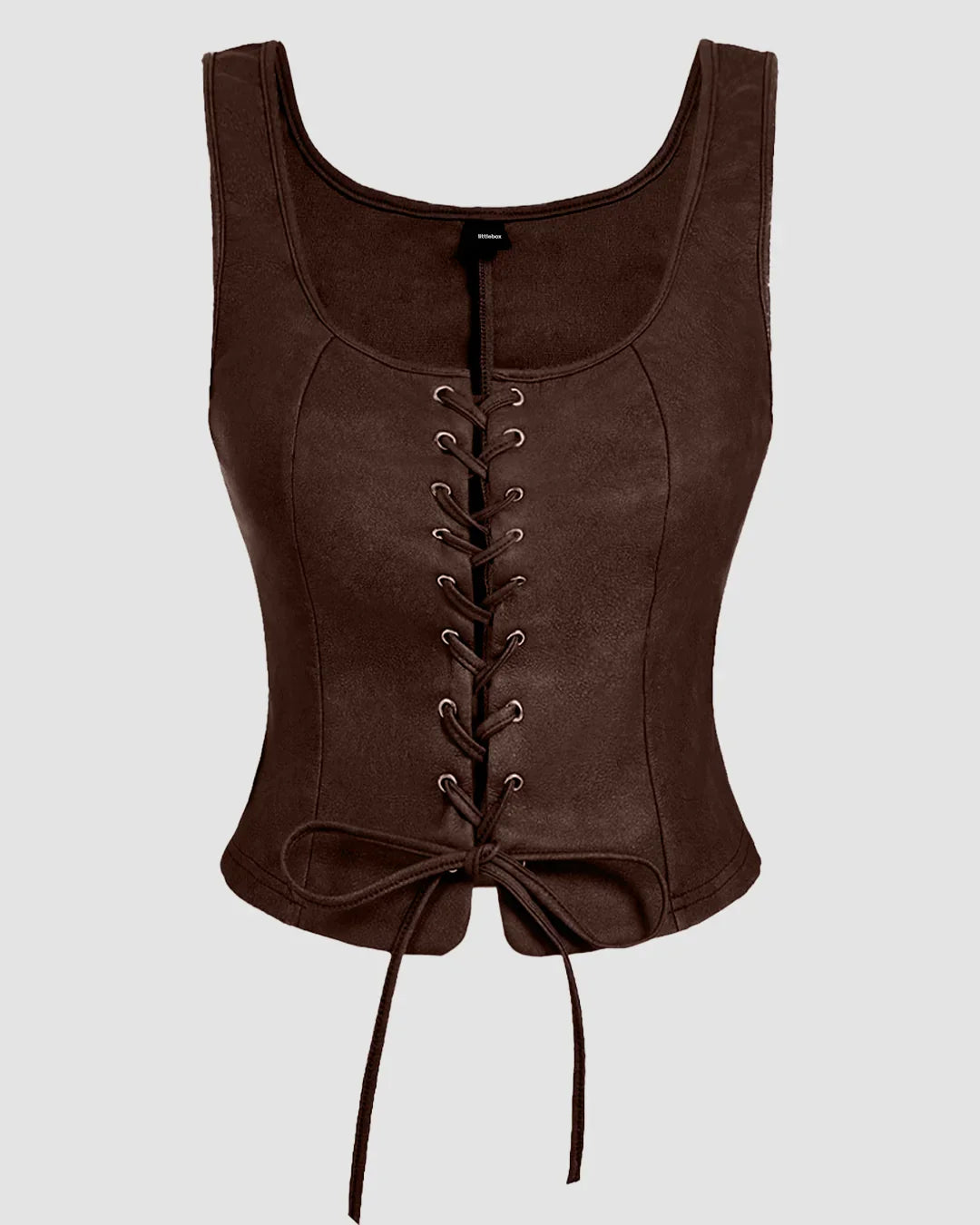 Lace Up Front Fitted Sleeveless Top in Brown