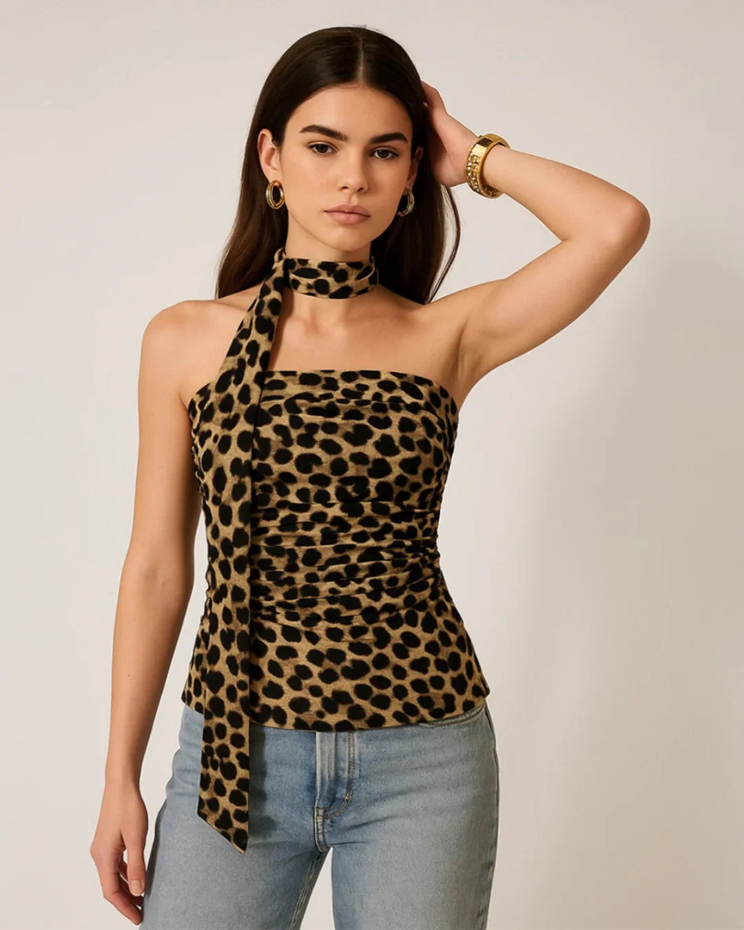 These strapless tube tops bring a bold, statement vibe with their eye-catching animal print and fitted silhouette. Designed with a smooth strapless neckline, they highlight the shoulders while keeping the look sleek. The soft ruching adds texture, and the tie-up detail gives a stylish edge. These strapless tube tops feel confident, trendy, and perfect for standout outfits.