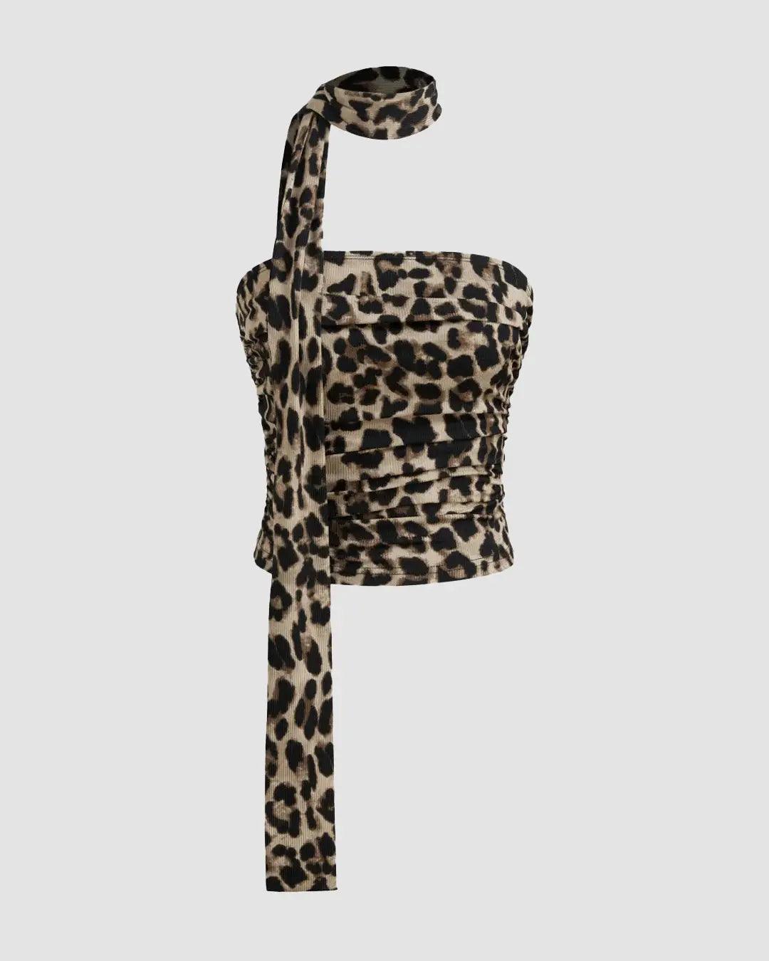 Leopard Print Strapless Fitted Tube Crop Top
