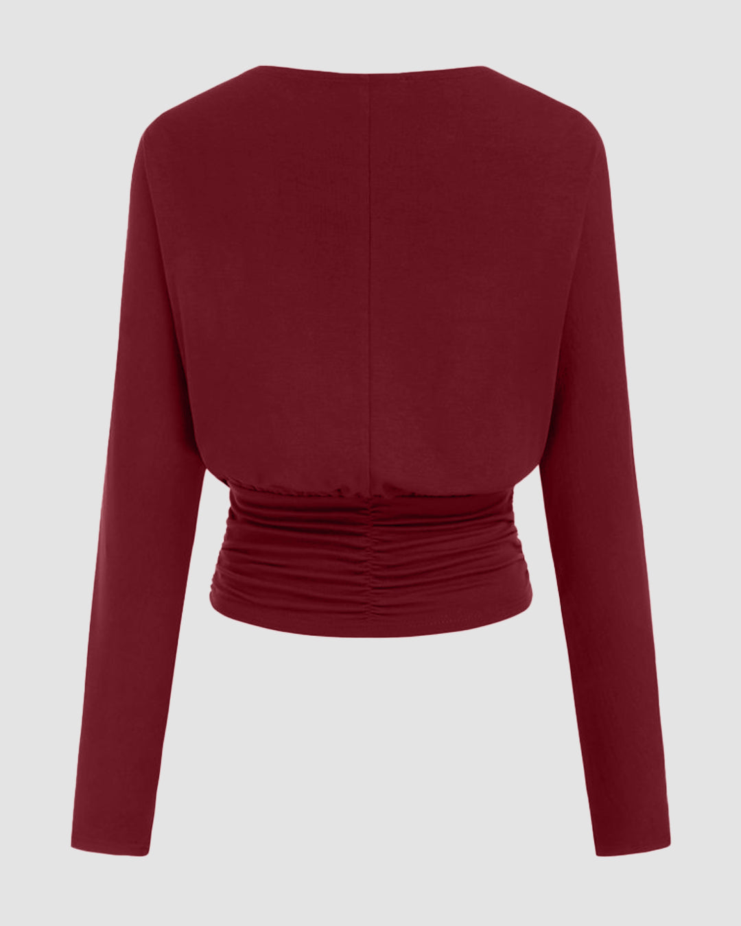 The fabric blend feels smooth, has light stretch and stays comfortable through the day. The ruched waist adds a soft contour that makes the top easy to pair with high-waist bottoms. If you like tops that look put-together with minimal effort, this Long Sleeve Top works well for daily wear, outings or casual evenings.