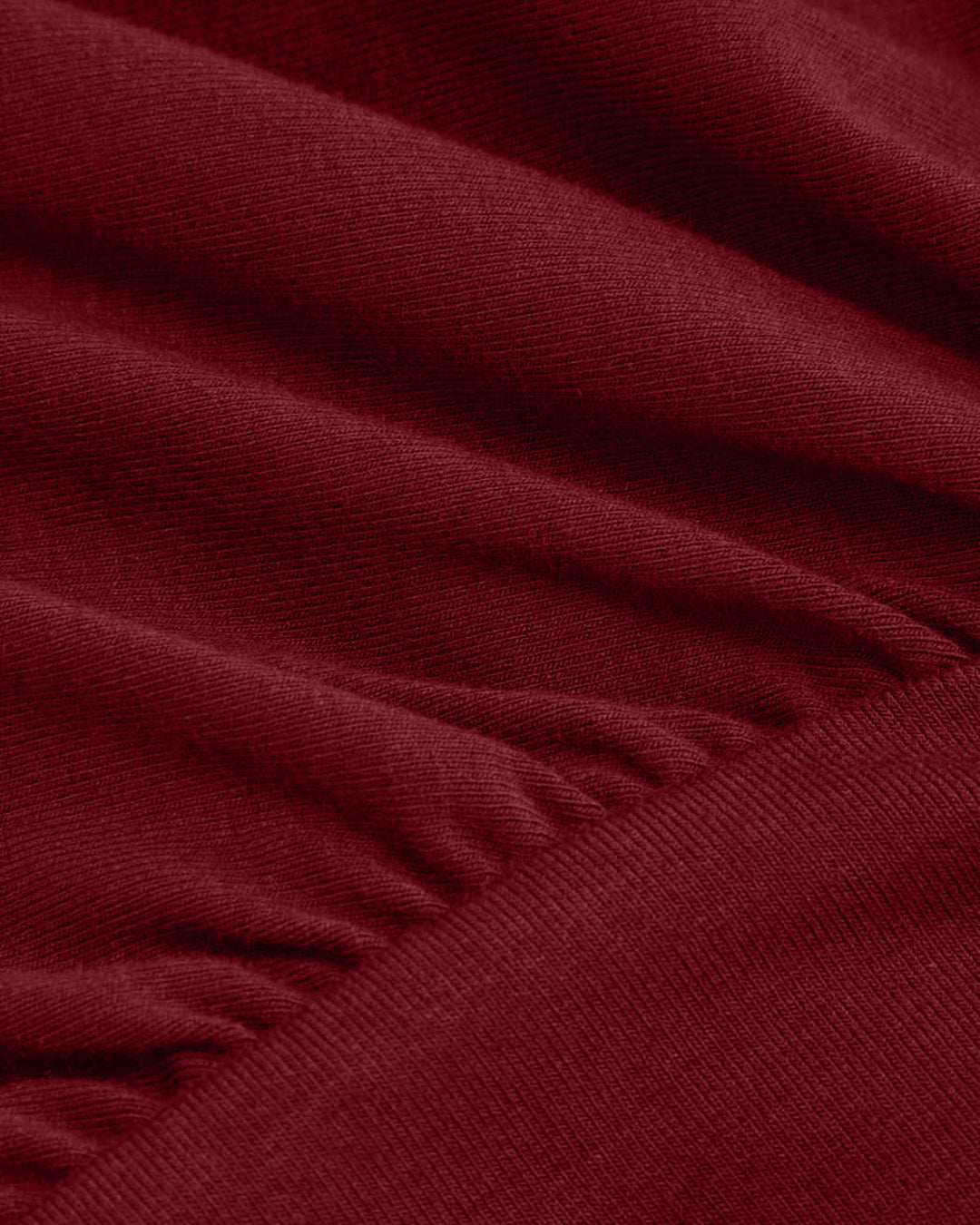 Maroon Asymmetrical Neck Cinched Waist Ruched Long Sleeve Top is a clean and stylish piece made for simple everyday dressing. This Long Sleeve Top comes with an asymmetrical neckline, soft gathering at the front and a cinched waist that adds subtle shape without feeling tight. The long sleeves keep it easy and comfortable, while the maroon colour gives it a warm and polished look.