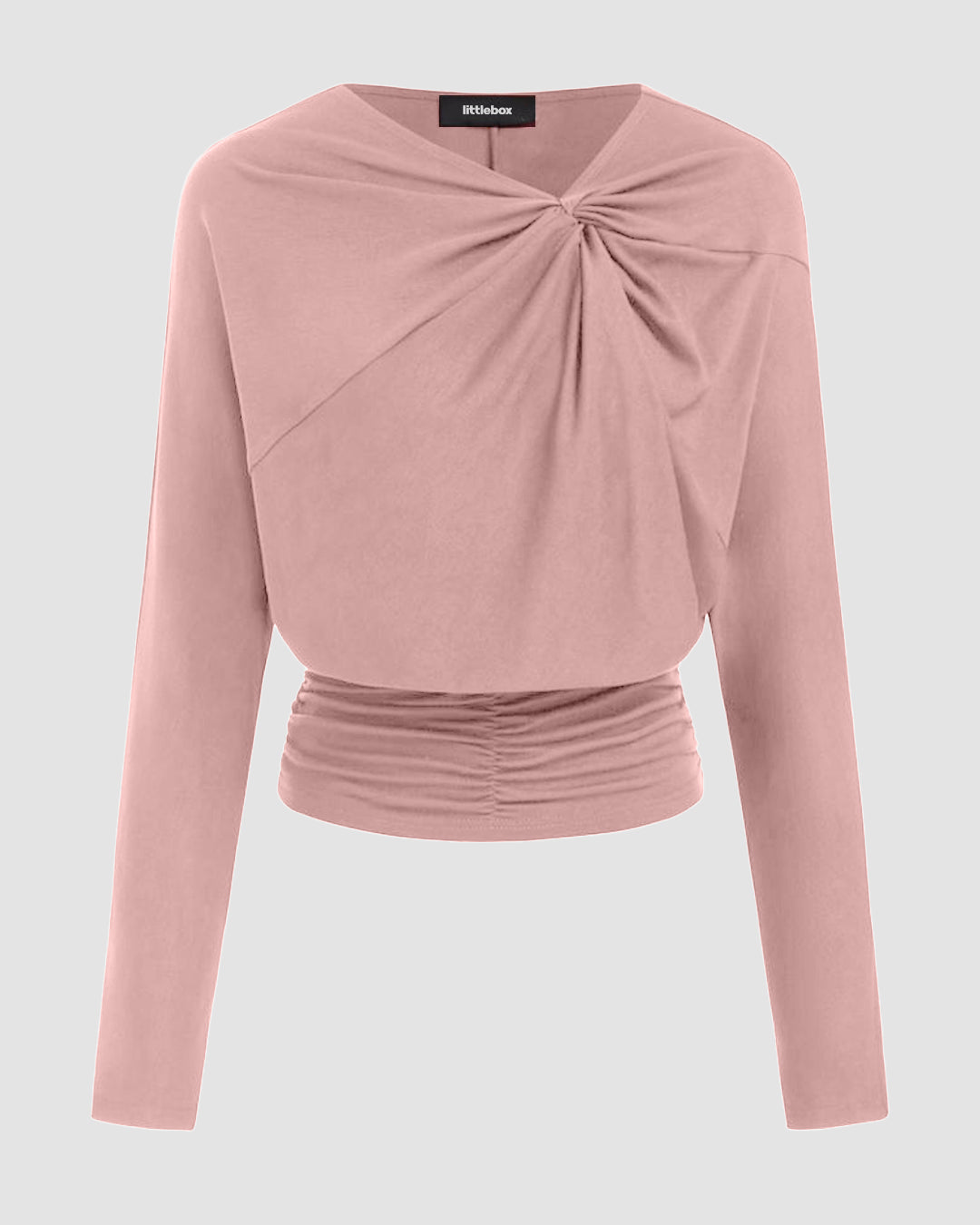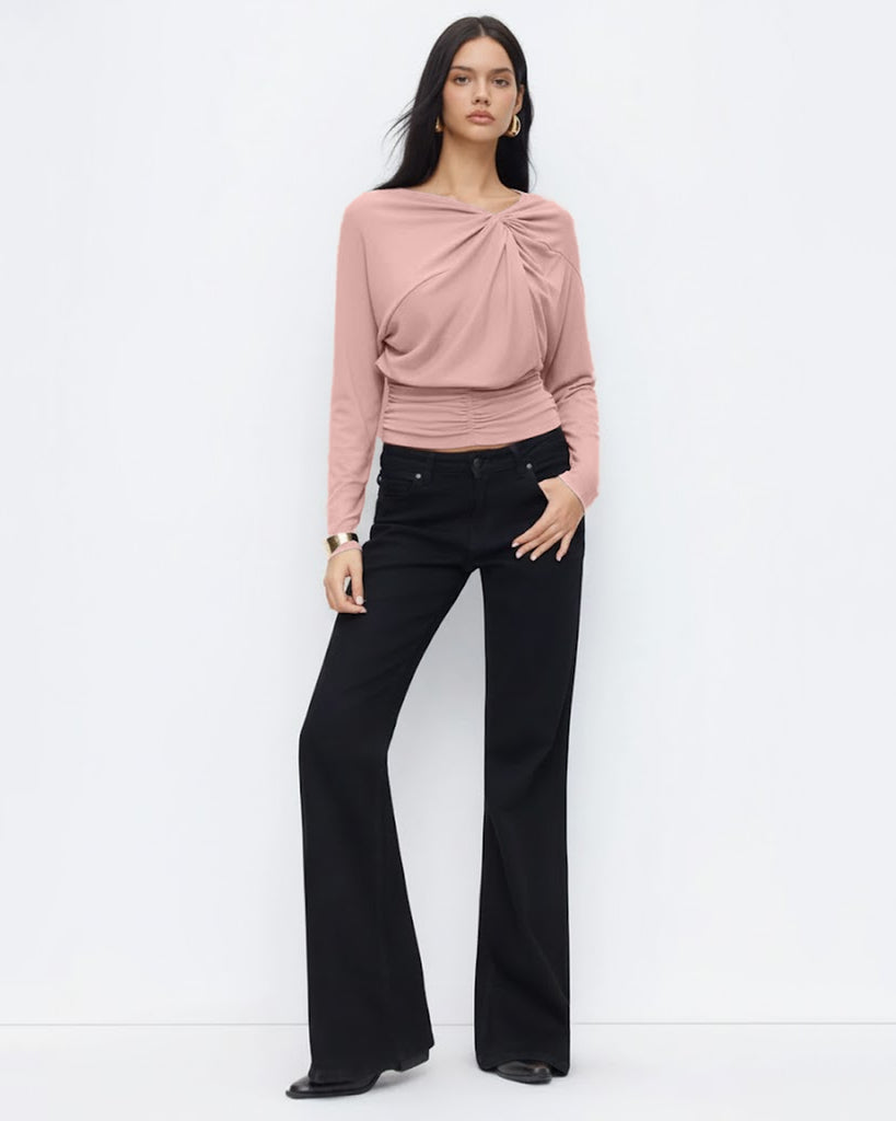 Rose Asymmetrical Neck Cinched Waist Ruched Long Sleeve Top is a clean and stylish piece made for simple everyday dressing. This Long Sleeve Top comes with an asymmetrical neckline, soft gathering at the front and a cinched waist that adds subtle shape without feeling tight. The long sleeves keep it easy and comfortable, while the rose colour gives it a warm and polished look.