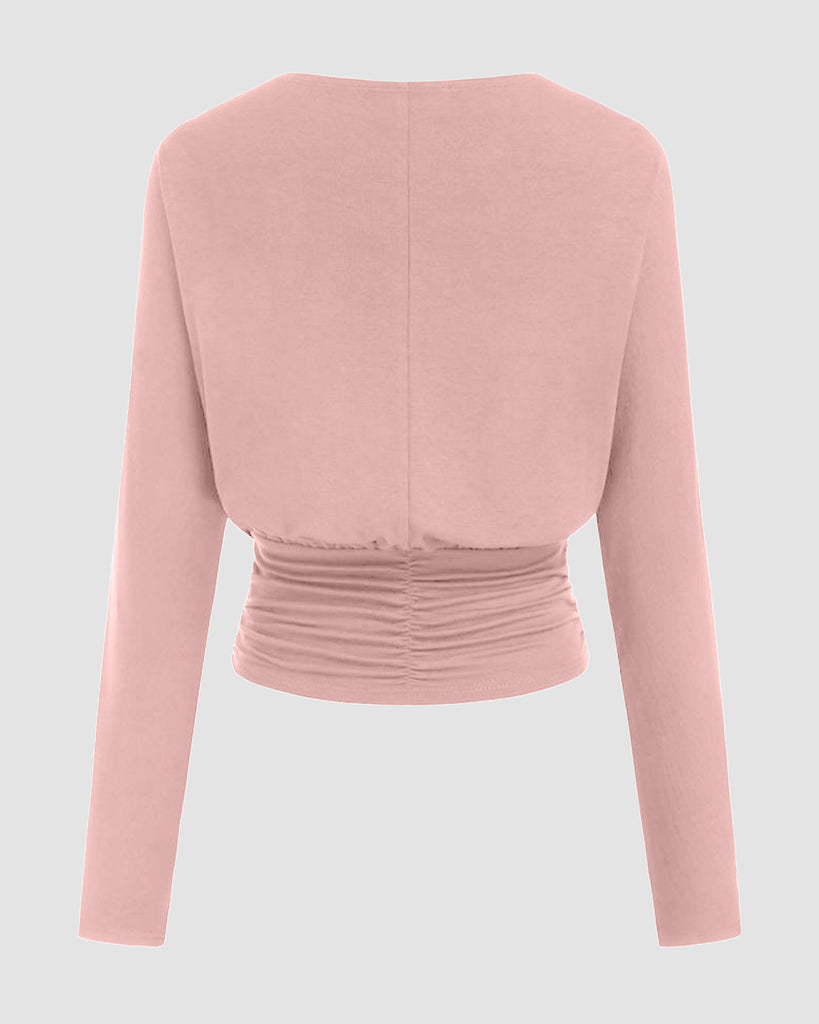 The fabric blend feels smooth, has light stretch and stays comfortable through the day. The ruched waist adds a soft contour that makes the top easy to pair with high-waist bottoms. If you like tops that look put-together with minimal effort, this Long Sleeve Top works well for daily wear, outings or casual evenings.