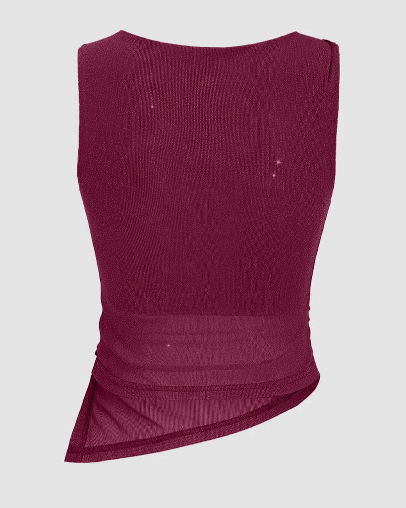 Maroon Ruched Side Asymmetric Hem Tank Top