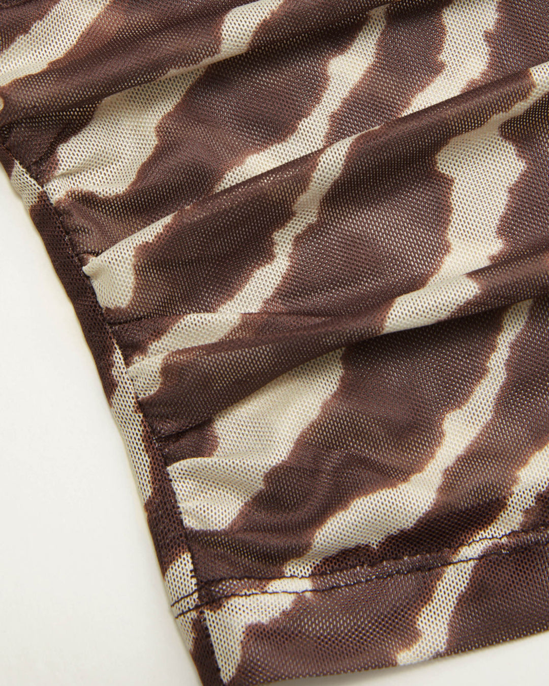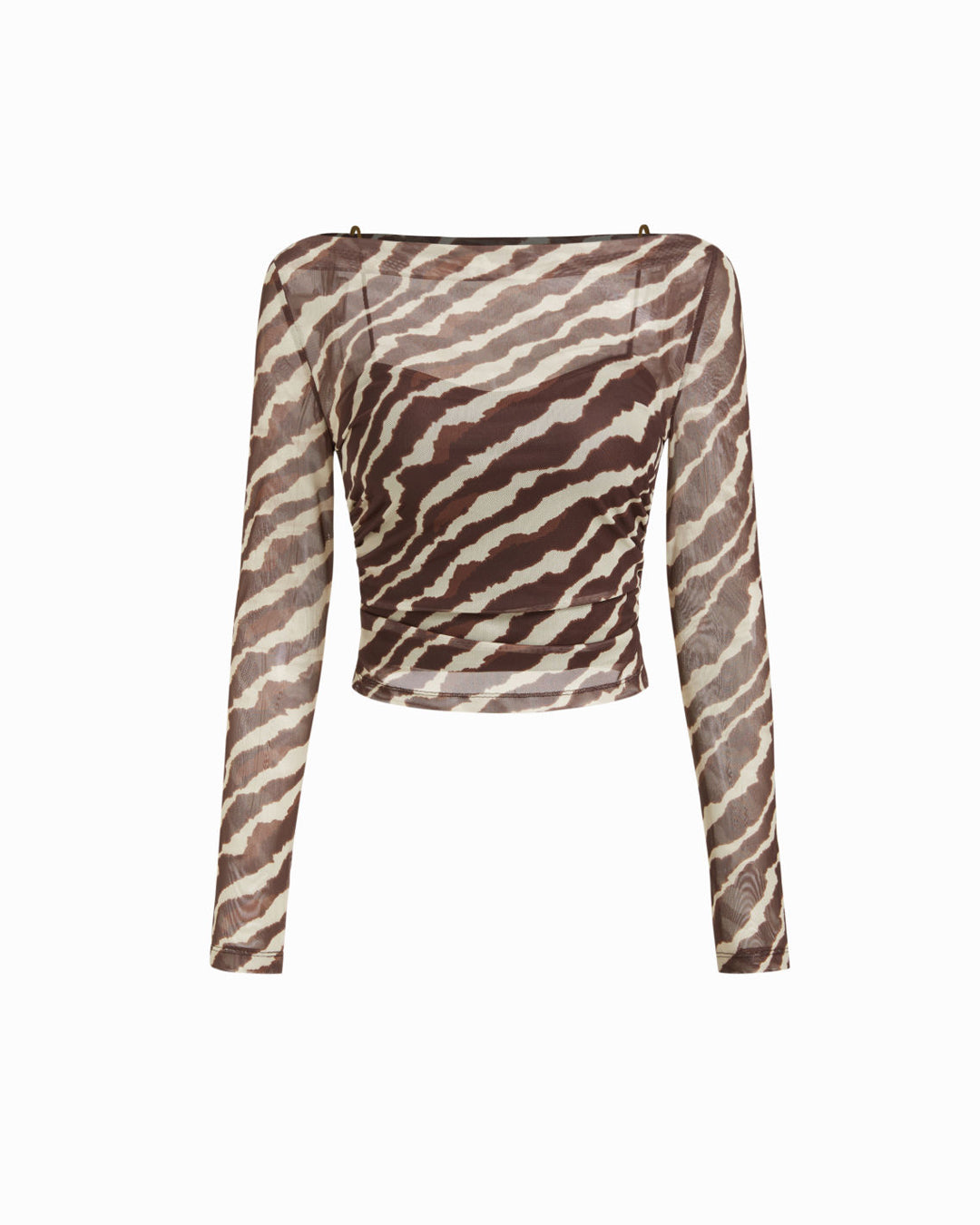 Make a bold statement with this striking mesh leopard top designed to turn heads. Featuring a flattering boat neckline and a sheer long sleeve overlay, this piece blends edgy allure with effortless sophistication. The layered design includes a fitted cami-style inner for added coverage, while the semi-sheer mesh outer creates a sultry, fashion-forward look.
