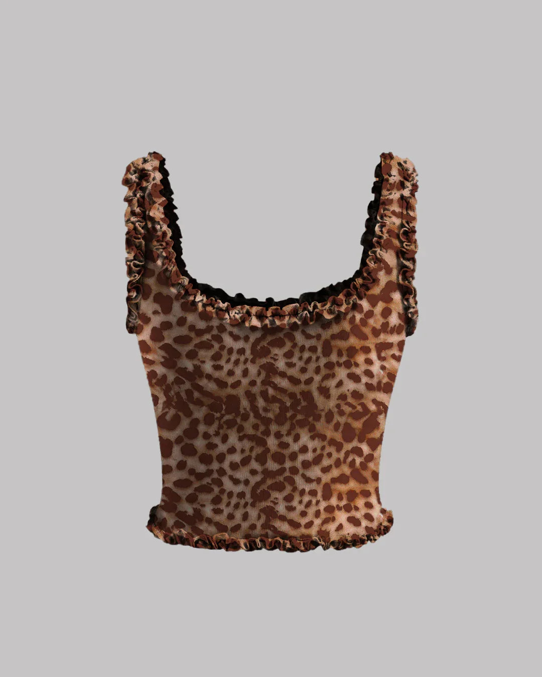 Crafted in a breathable stretch mesh blend, Mesh Square Neck Solid Lettuce Trim Crop Cami Top feels light on the skin and moves comfortably with you. The wide ruffled straps add texture and elevate the overall look, making it ideal for layering or wearing solo. Whether you are heading out for brunch or styling it for a night plan, this crop cami keeps your outfit effortlessly cute.