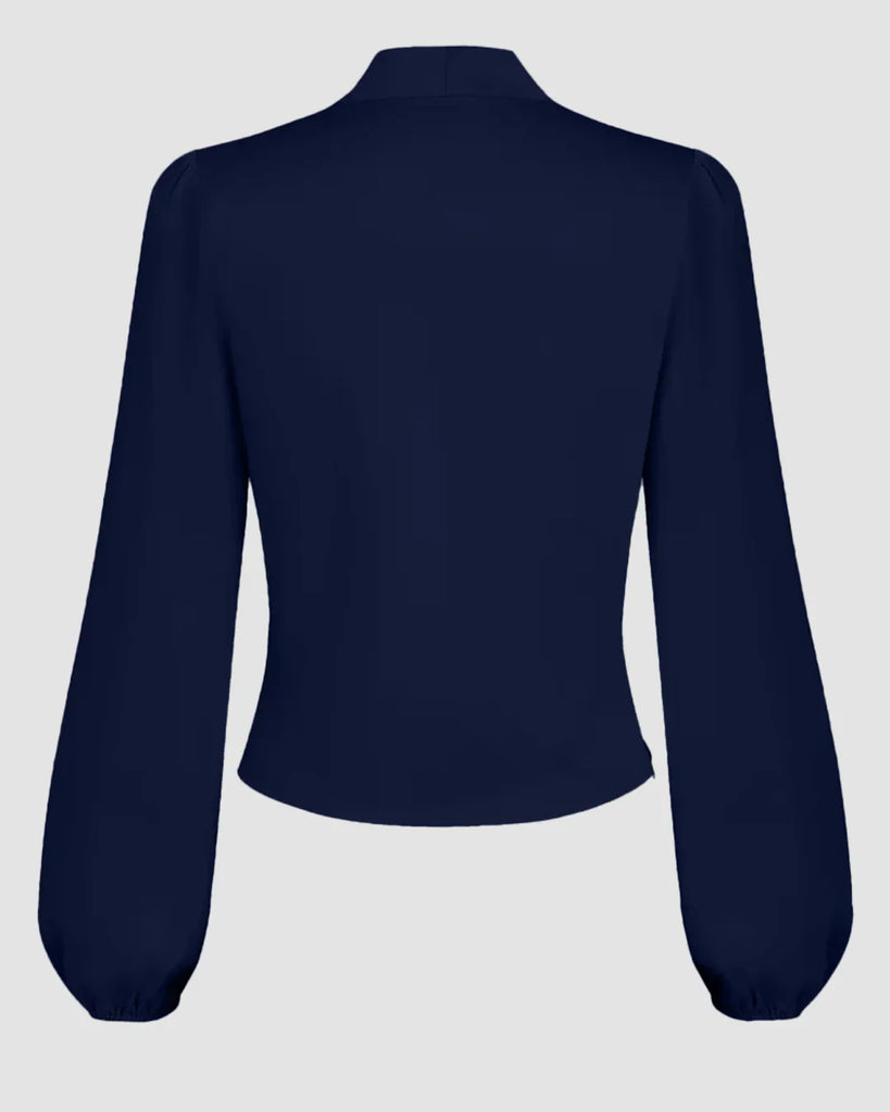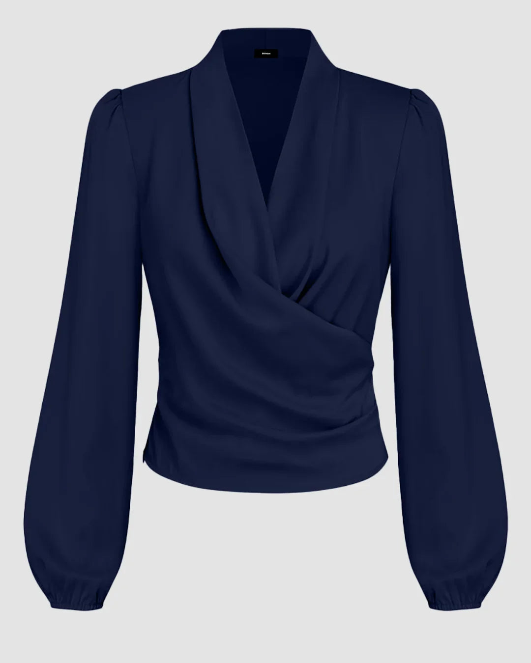 Navy Blue Draped V-Neck Full Sleeve Top