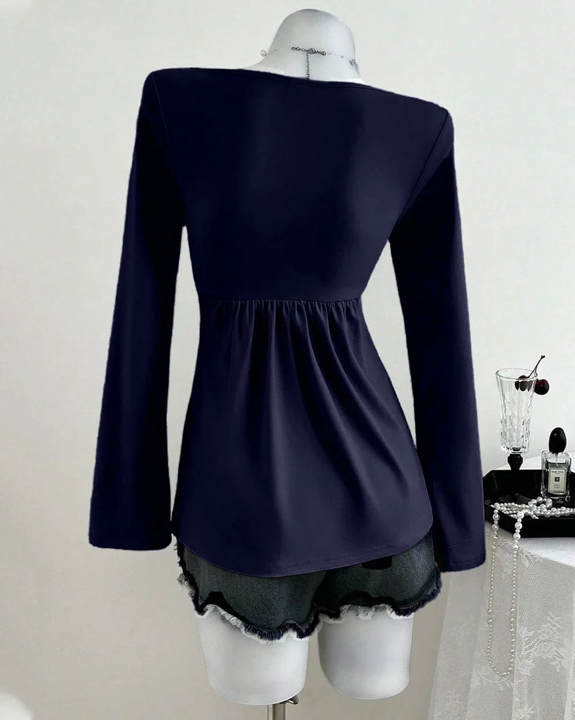 Navy Blue Sweetheart Neck Flared Sleeve Top