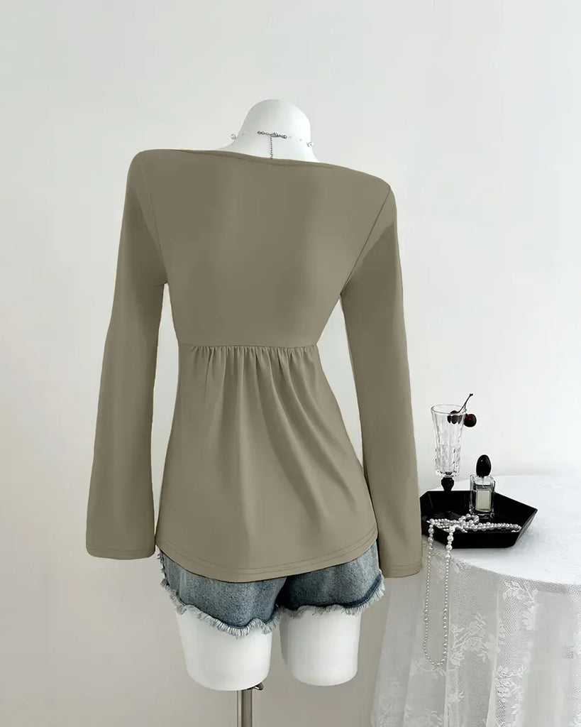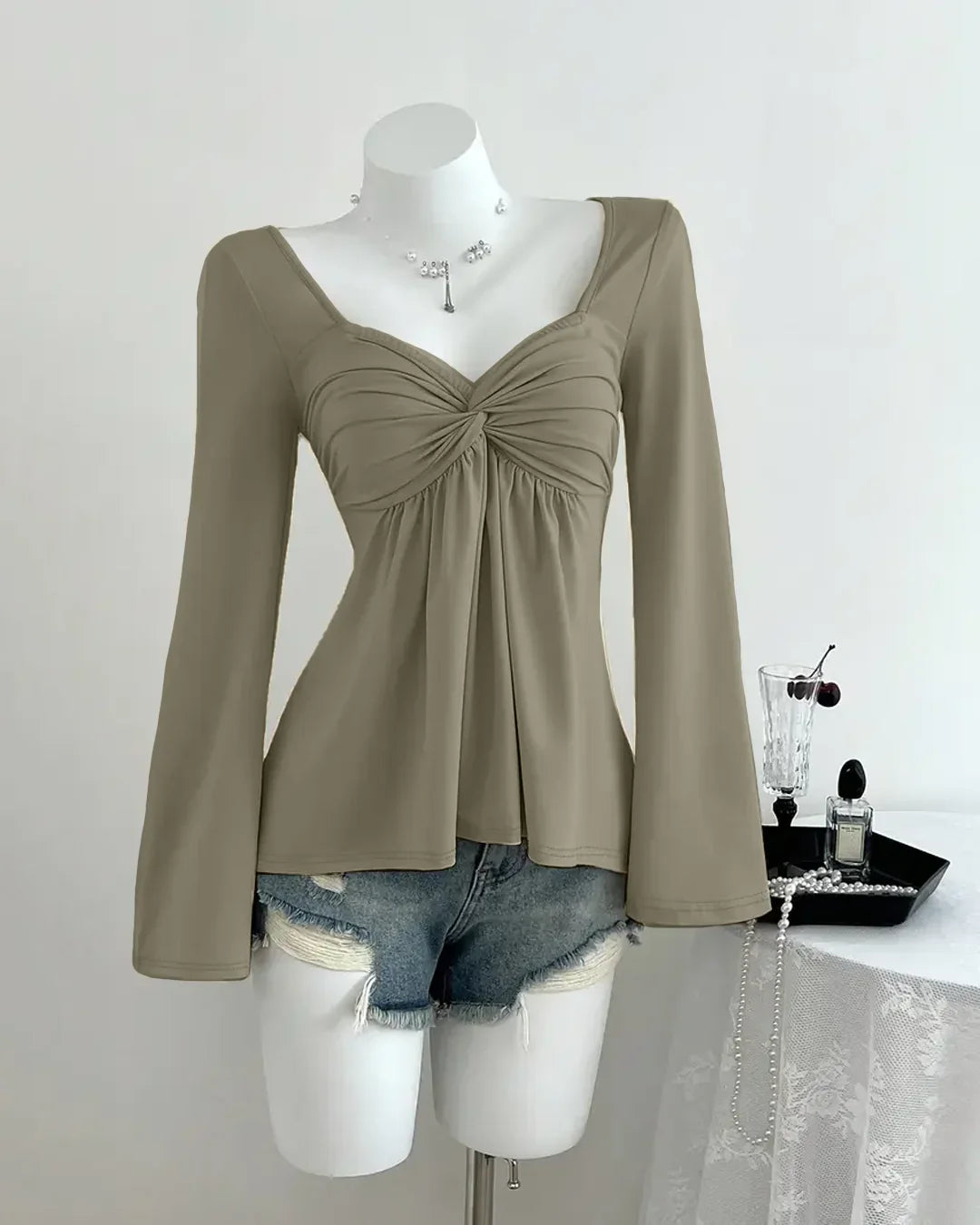 Olive Ruched Sweetheart Neck Full Sleeve Top