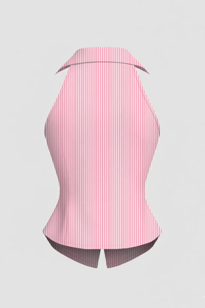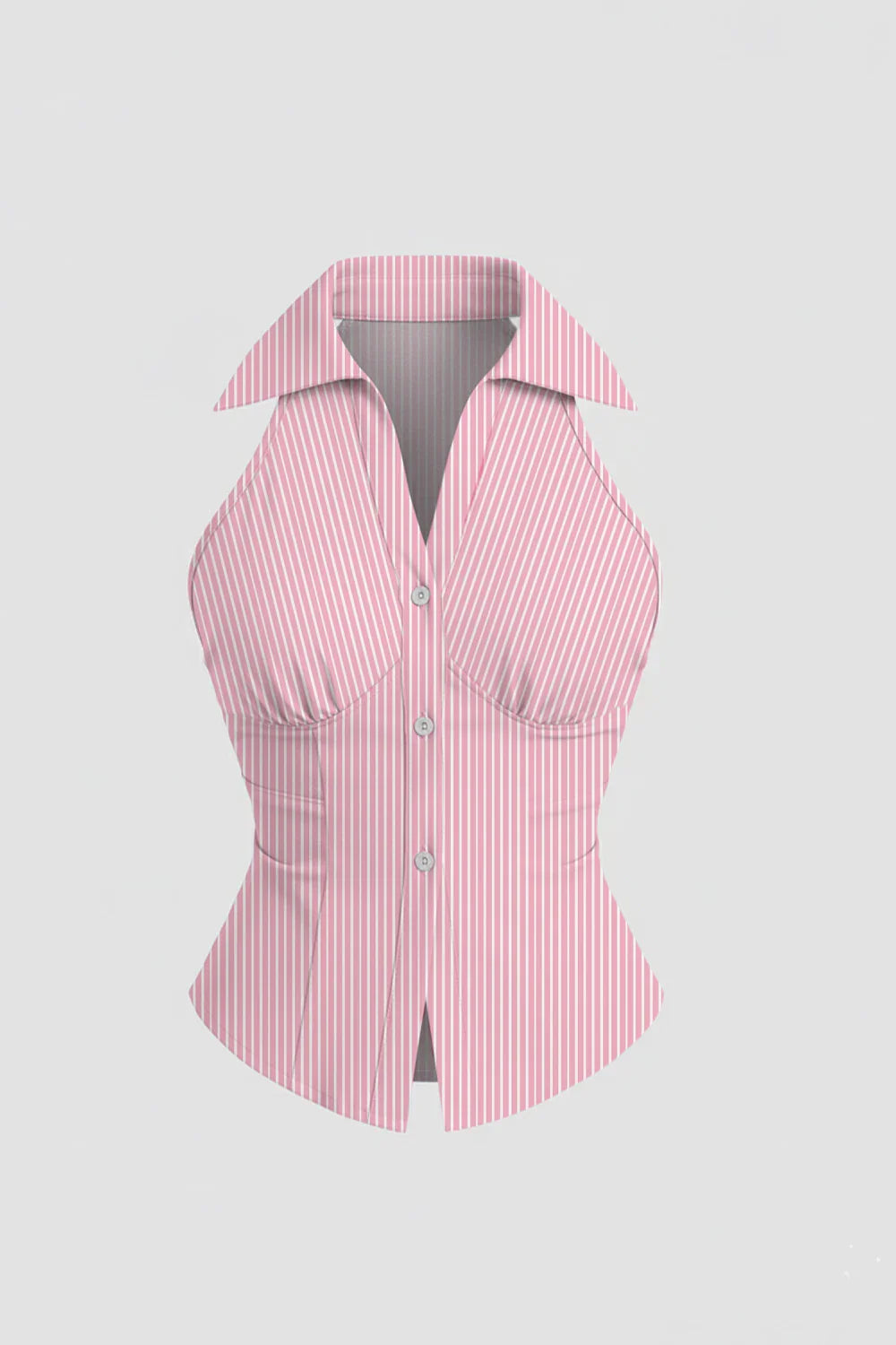 Pink Striped Button-Up Top with Collared Neckline