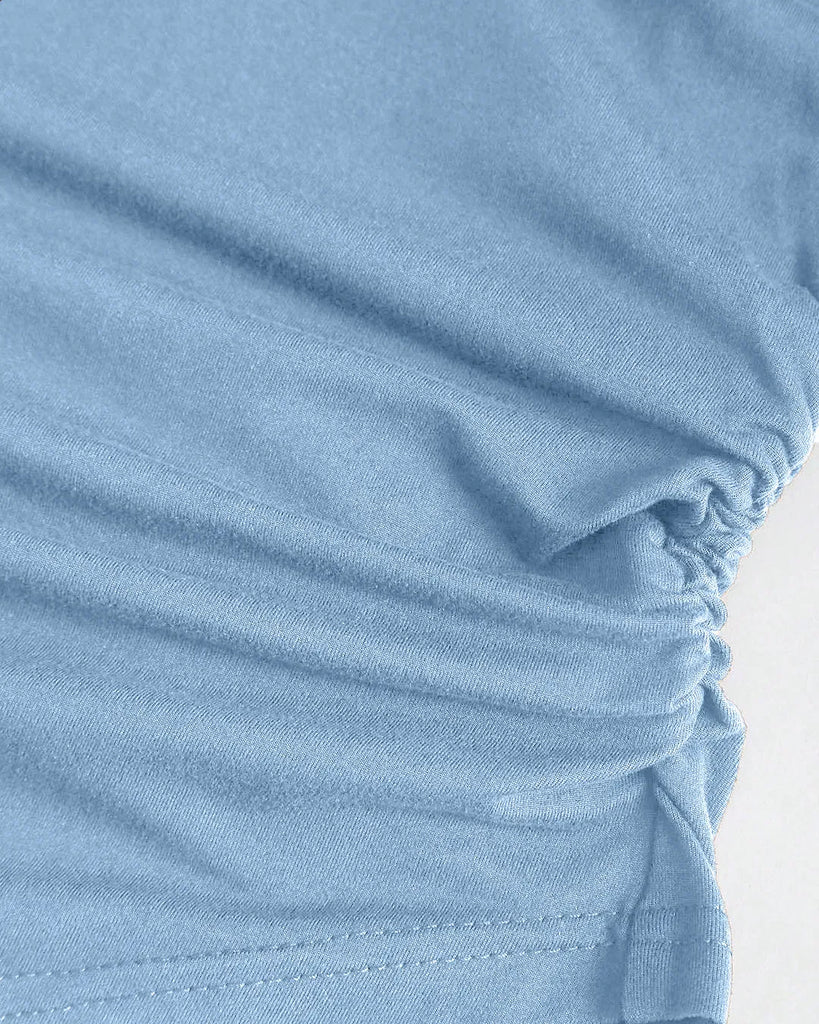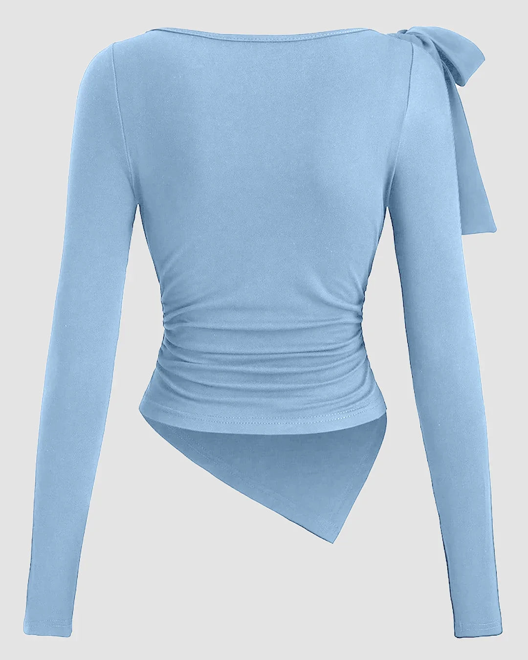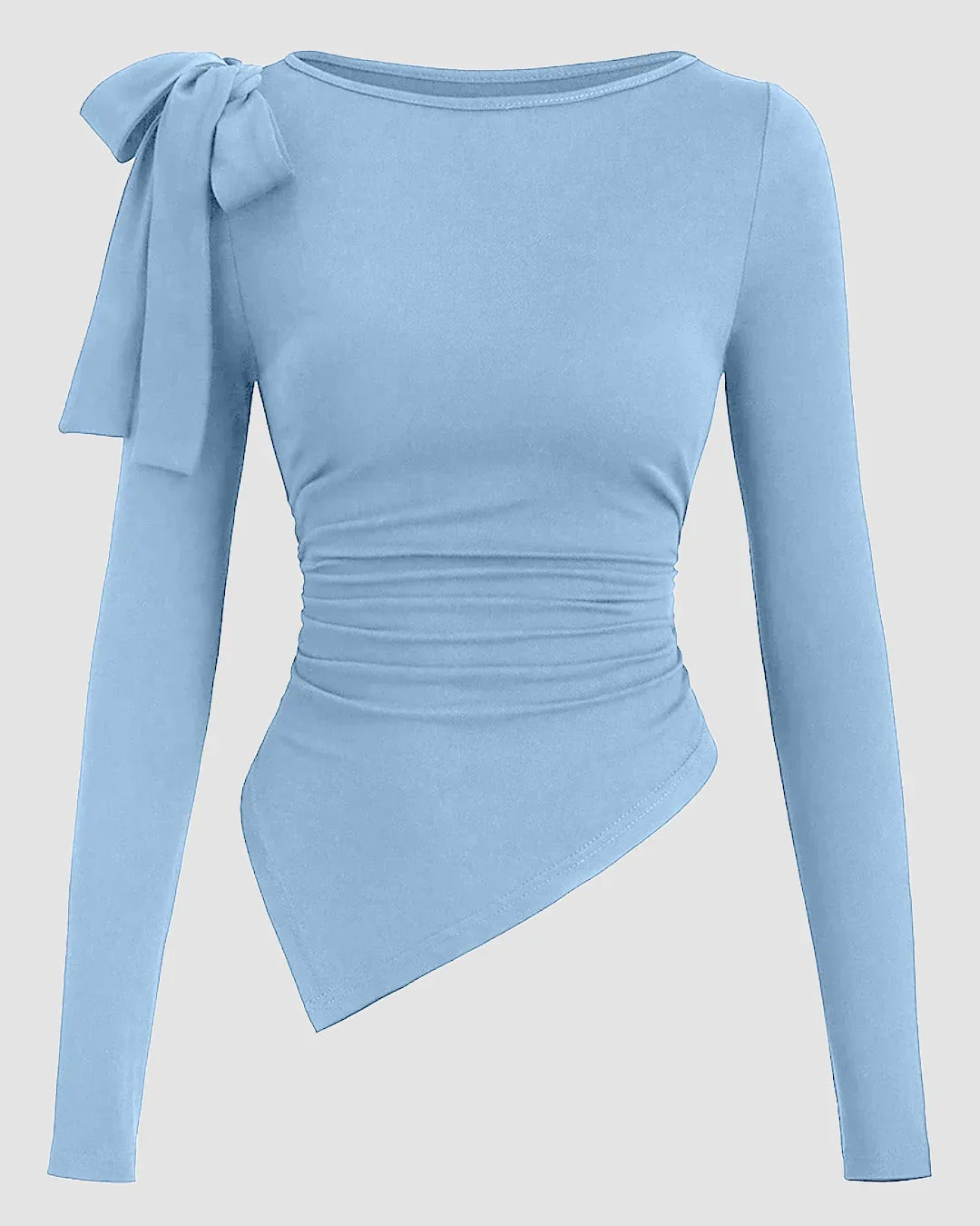 Powder Blue One Shoulder Bow Detail Full Sleeve Top