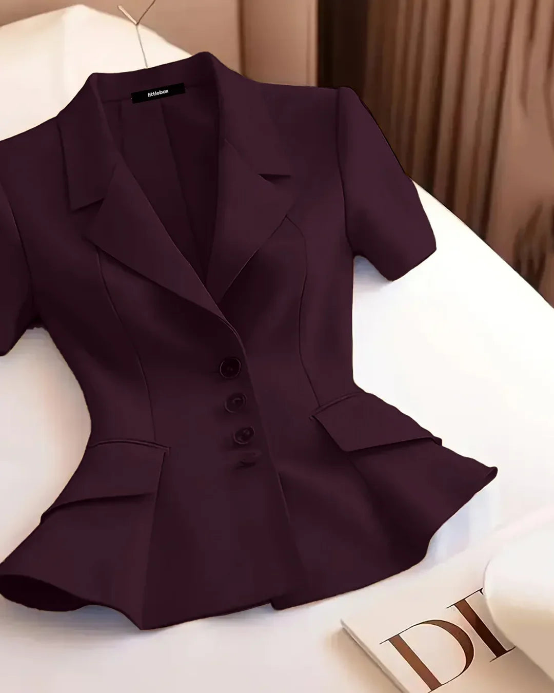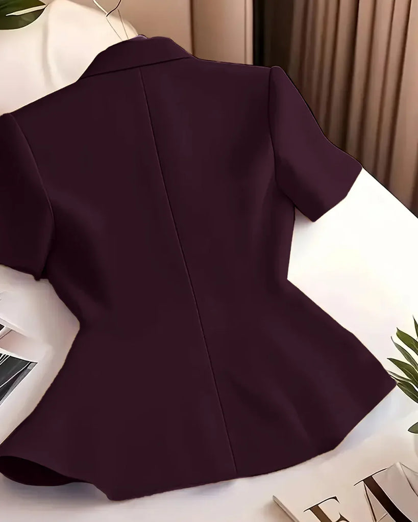 Purple Short Sleeve Front Button Blazer Top