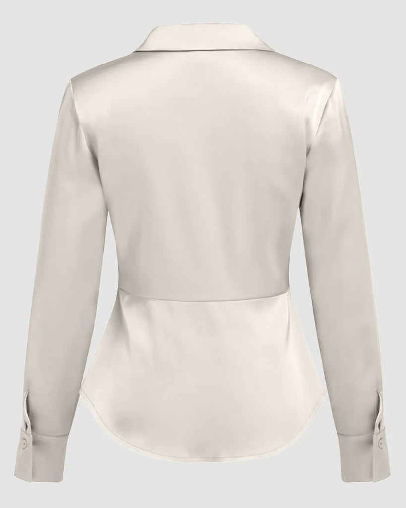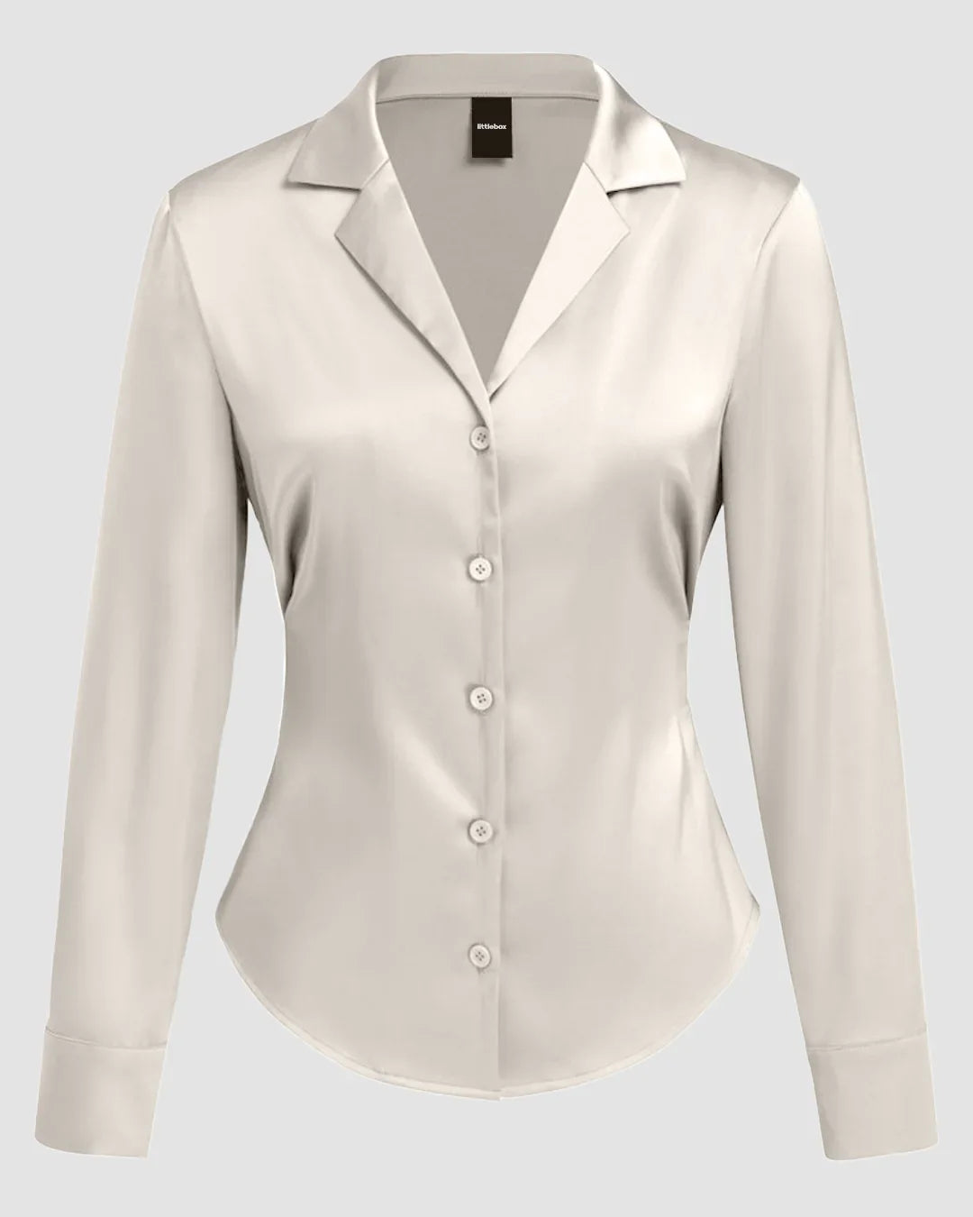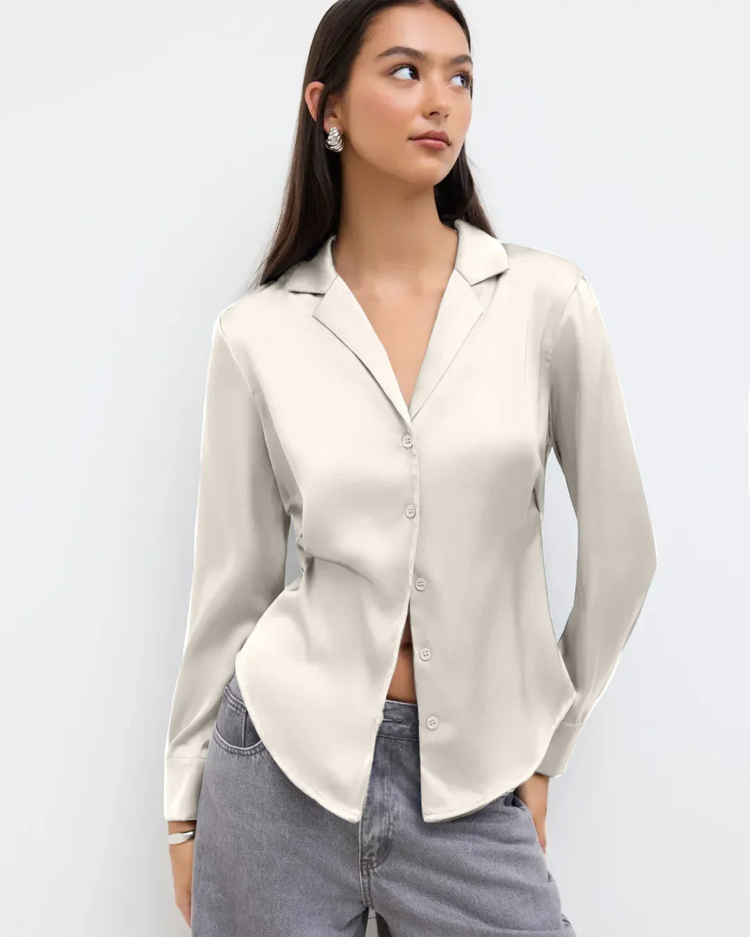 Satin Finish Front Button Collar Full Sleeve Shirt in Cream