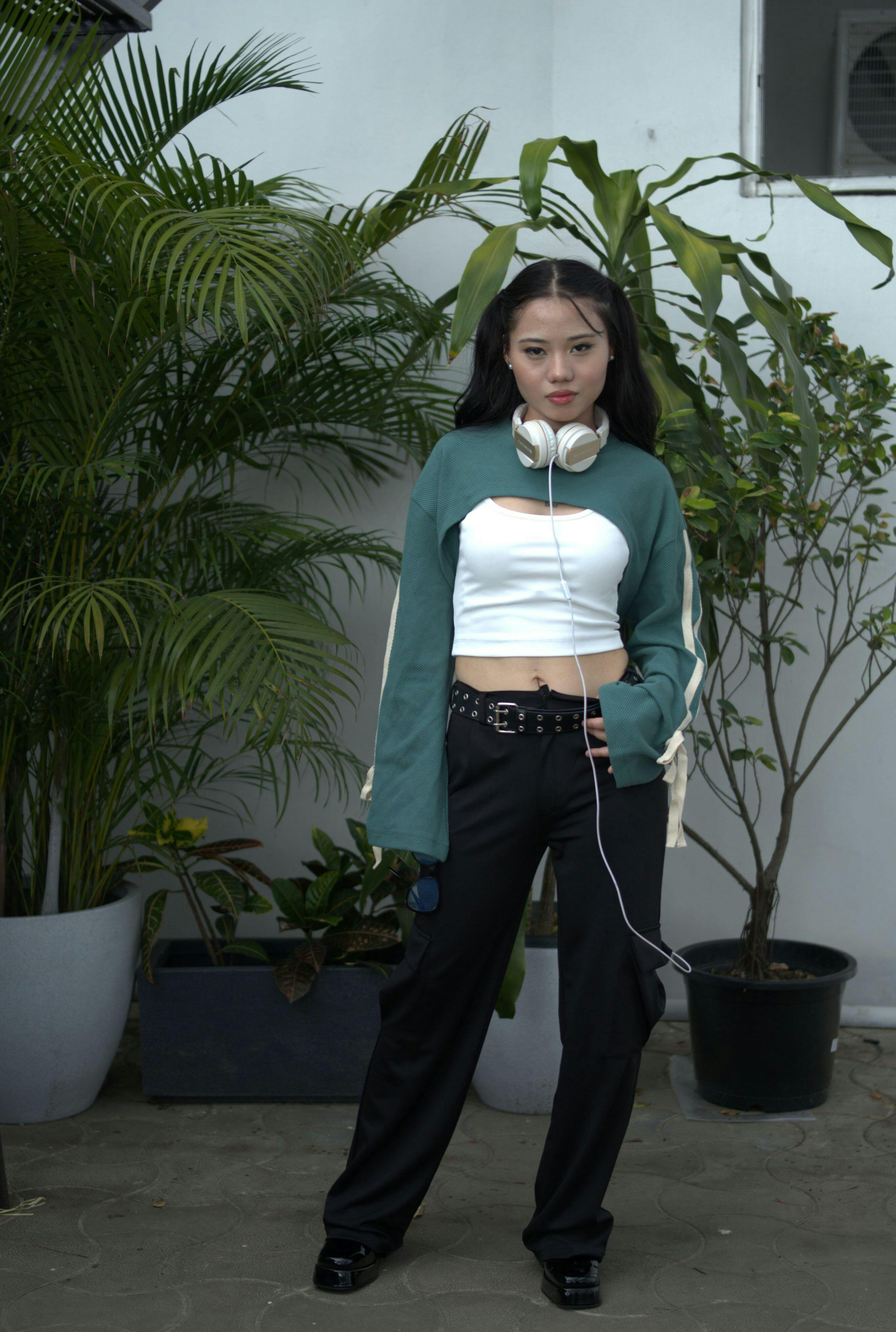 - Evening Look: Wear the solid cami top with flared trousers and chunky earrings