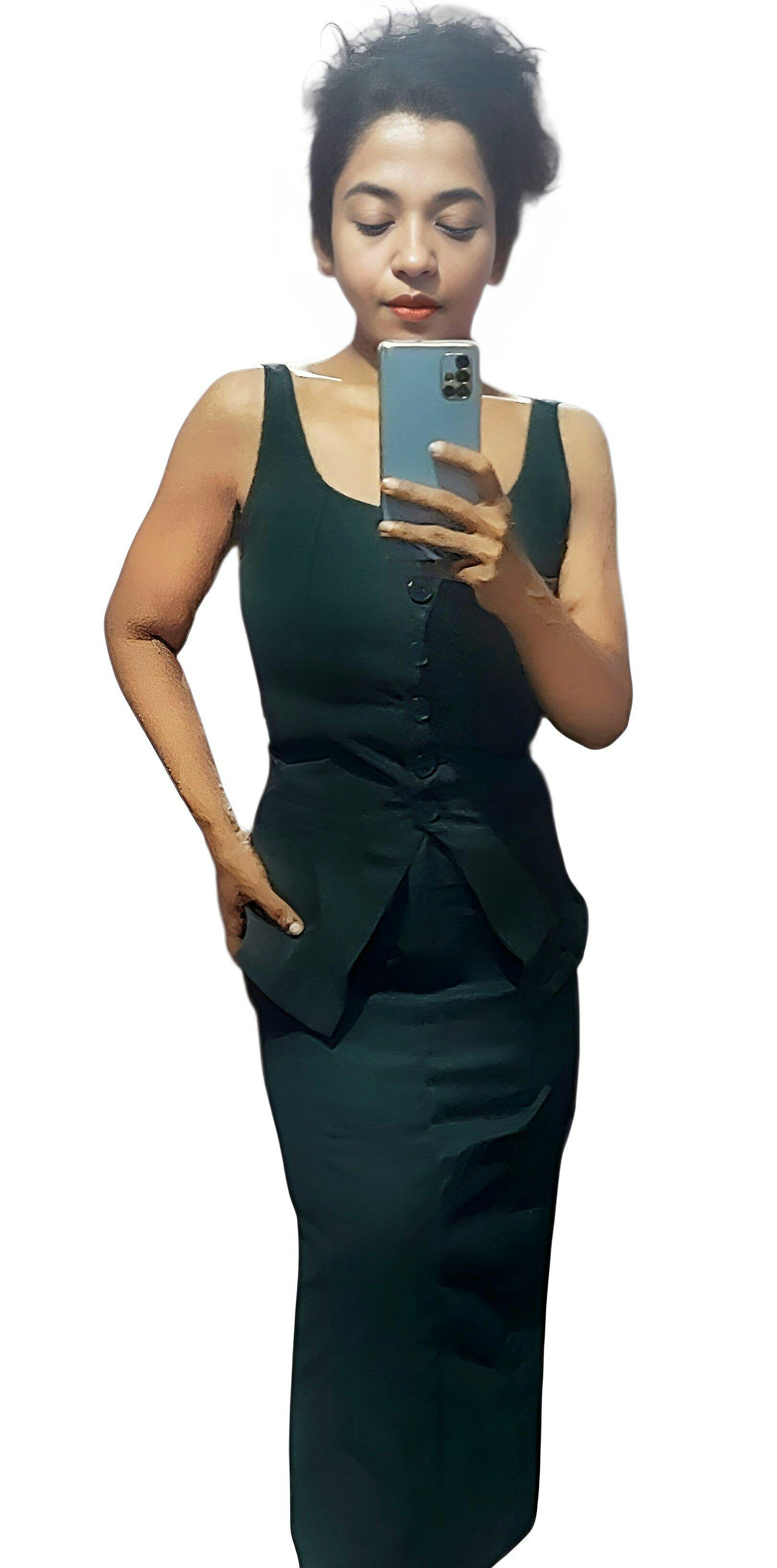 The Sleeveless Button Down Corset Style Top in Dark Grey is a sleek and modern piece designed to give you a sharp yet feminine silhouette. With its structured fit, button-down front, and front slit detail, this corset style top brings an edge to your everyday and evening looks.