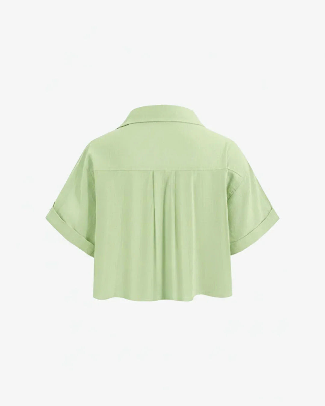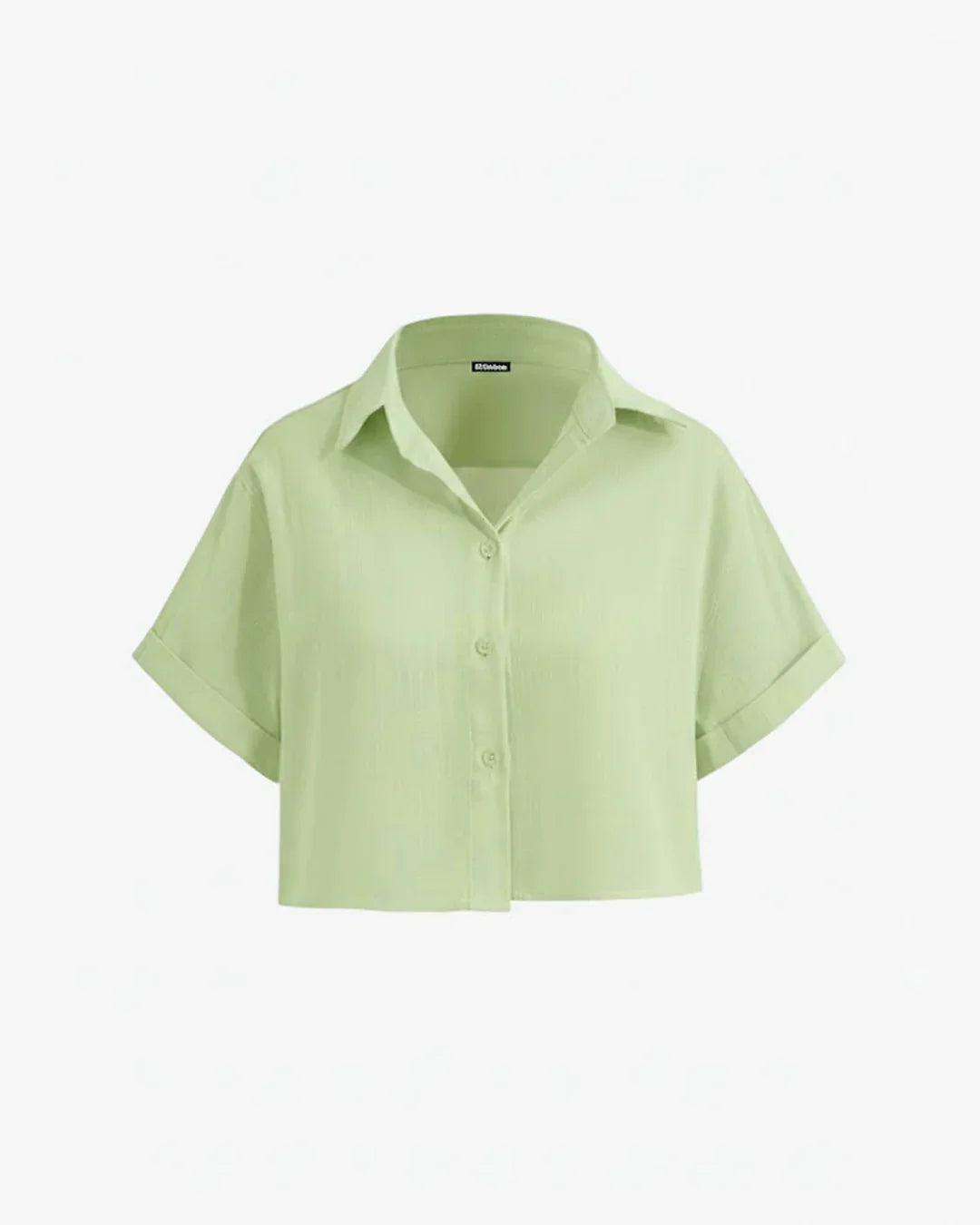 This solid color top is designed for clean, effortless styling. Made with a soft polyester and cotton blend, it feels breathable and light while keeping a structured shape. The relaxed silhouette gives you comfort without looking oversized, and the classic collar detail adds a polished finish.