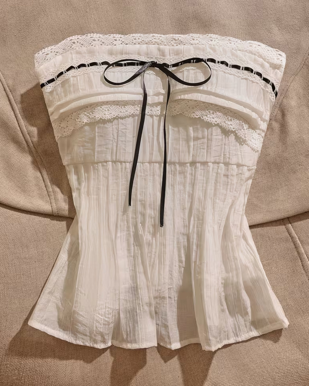 Strapless Lace Ribbon Bow Top in White