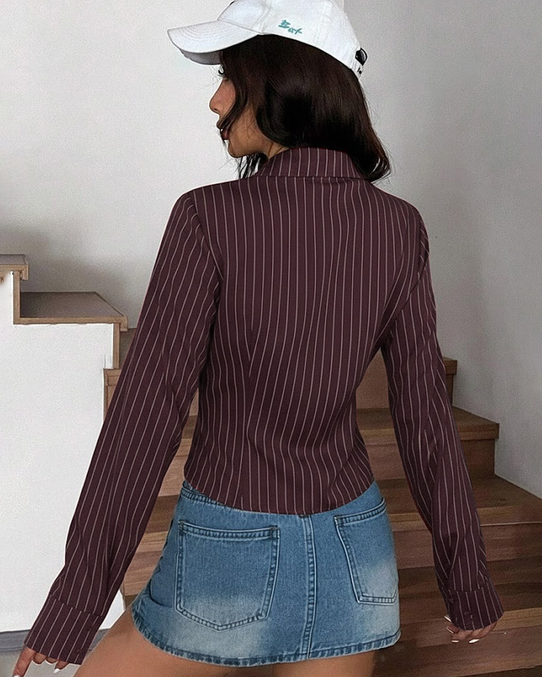 Striped Corset Style Fitted Shirt Top in wine