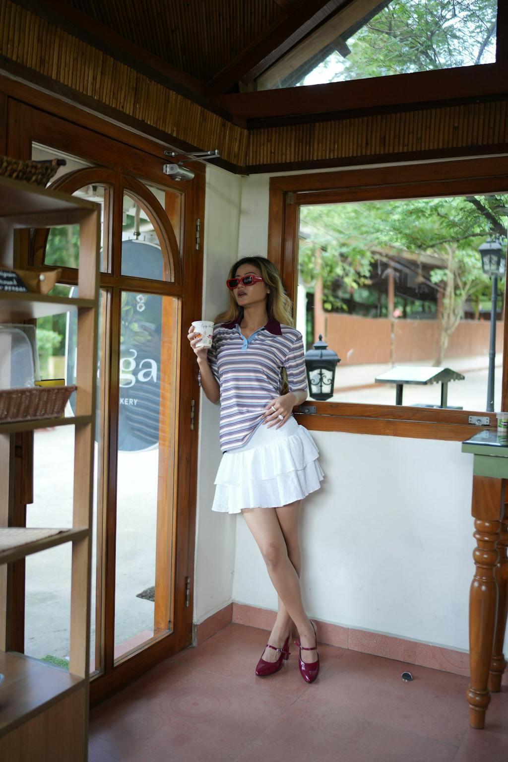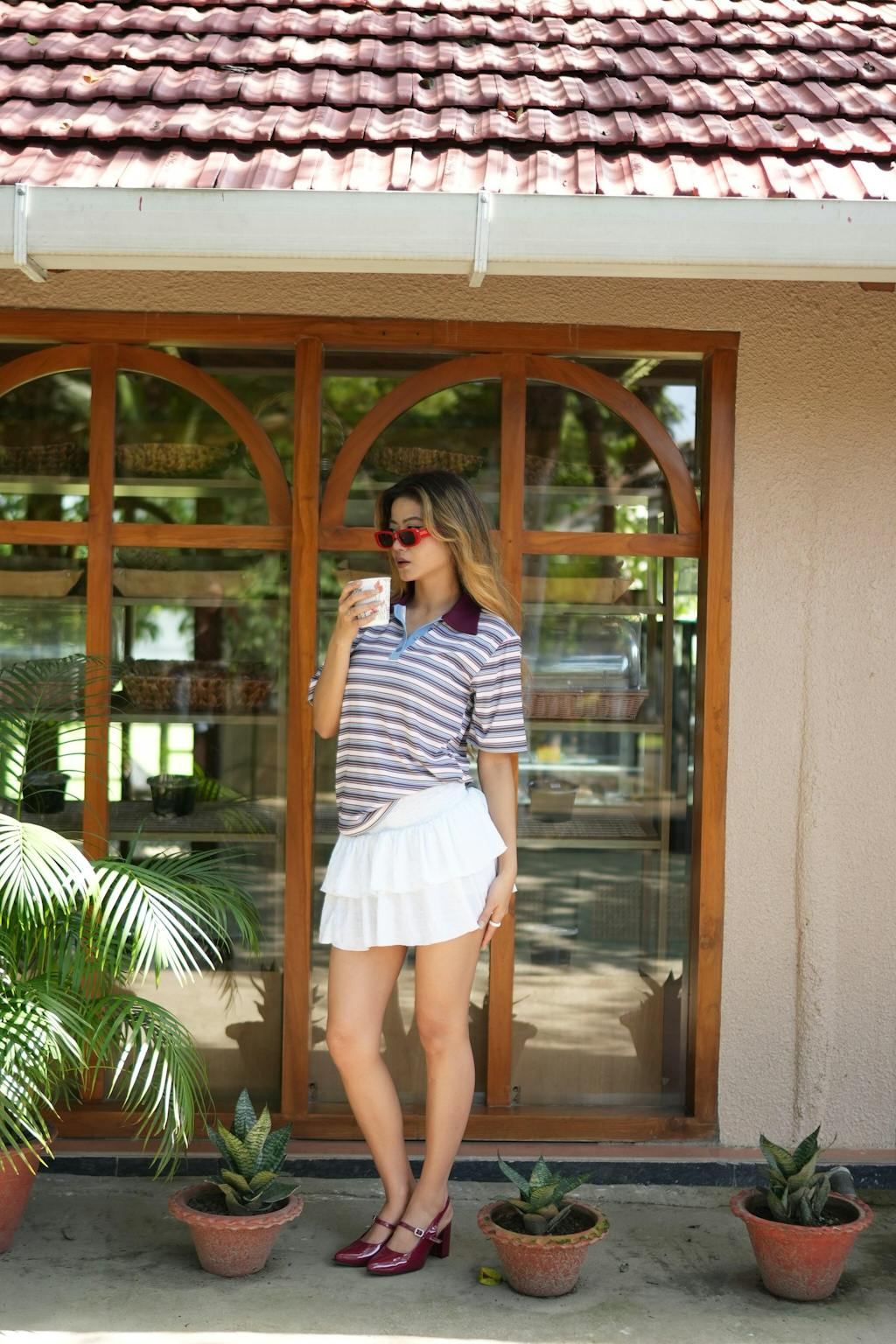 Striped Polo Collar T-Shirt with Contrast Detailing