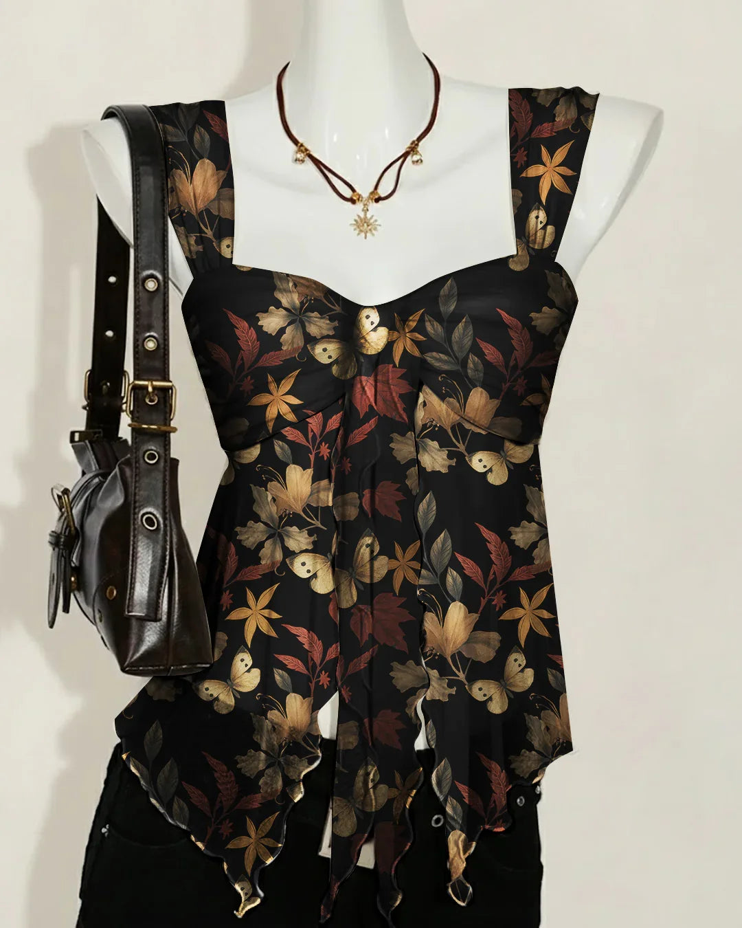 Sweetheart Neck Slim Fit Straight Hem Floral Print Sleeveless Top
