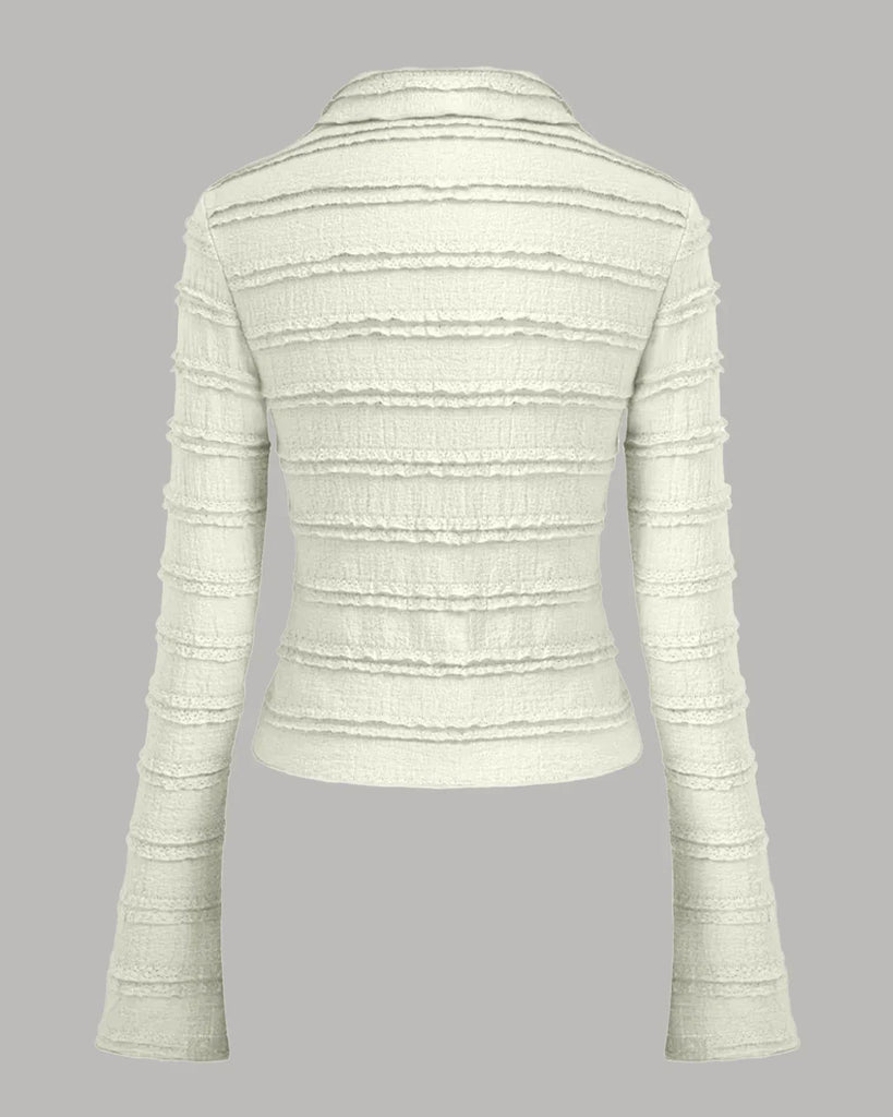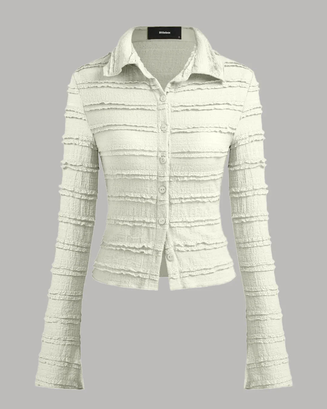 This long sleeve top is your new go-to for chic layering. Designed with a textured finish, button-up closure, and collared neckline, it balances comfort with a polished edge. The soft cream tone makes it easy to style, giving long sleeve tops a refined upgrade that works for any occasion.