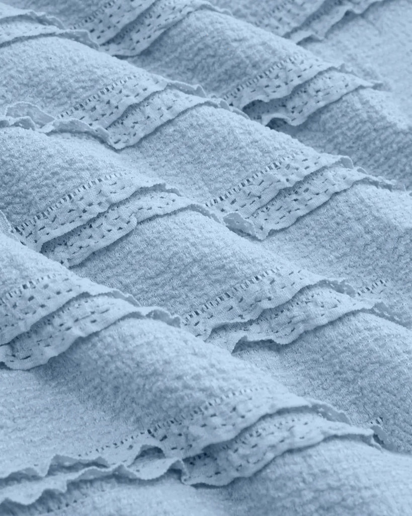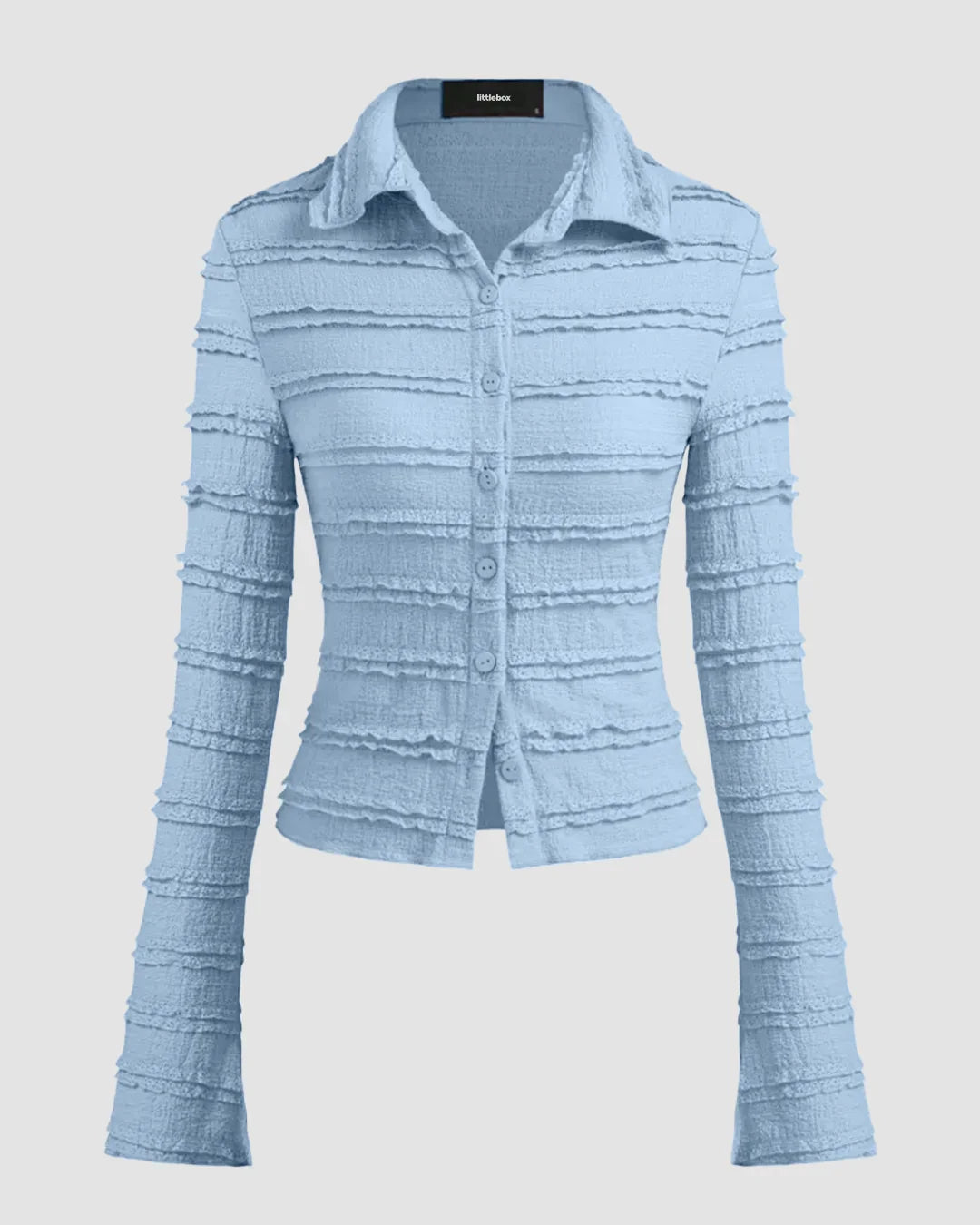 Textured Long Sleeve Button Up Top in Dusty Blue