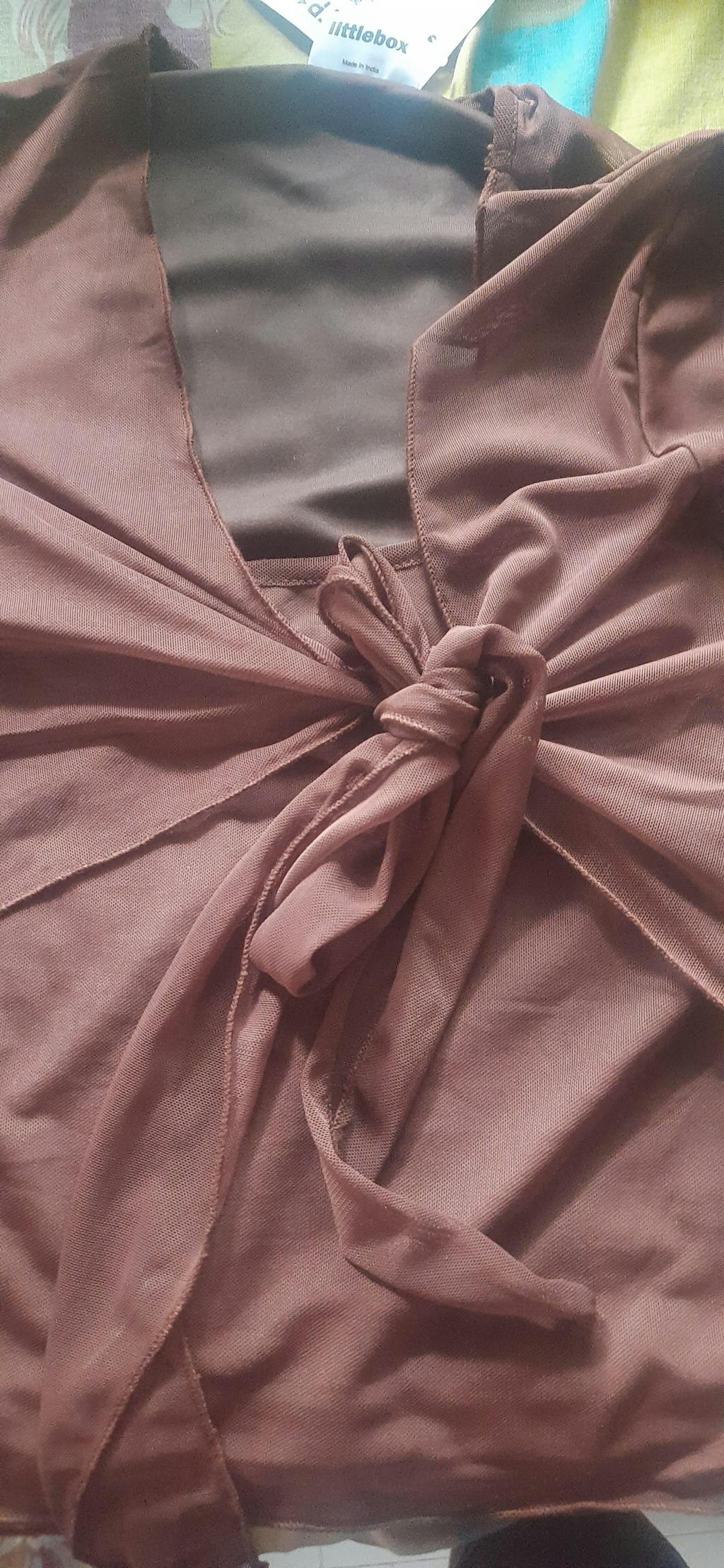Introducing our Tie Front Square Neck Crop Top In Brown. This square neck crop top is all about effortless charm and bold femininity. With its front tie detail and subtle lettuce hem, it’s a flattering piece that hugs right where it should. The mesh finish and cropped silhouette bring that Insta-ready energy without going over the top.