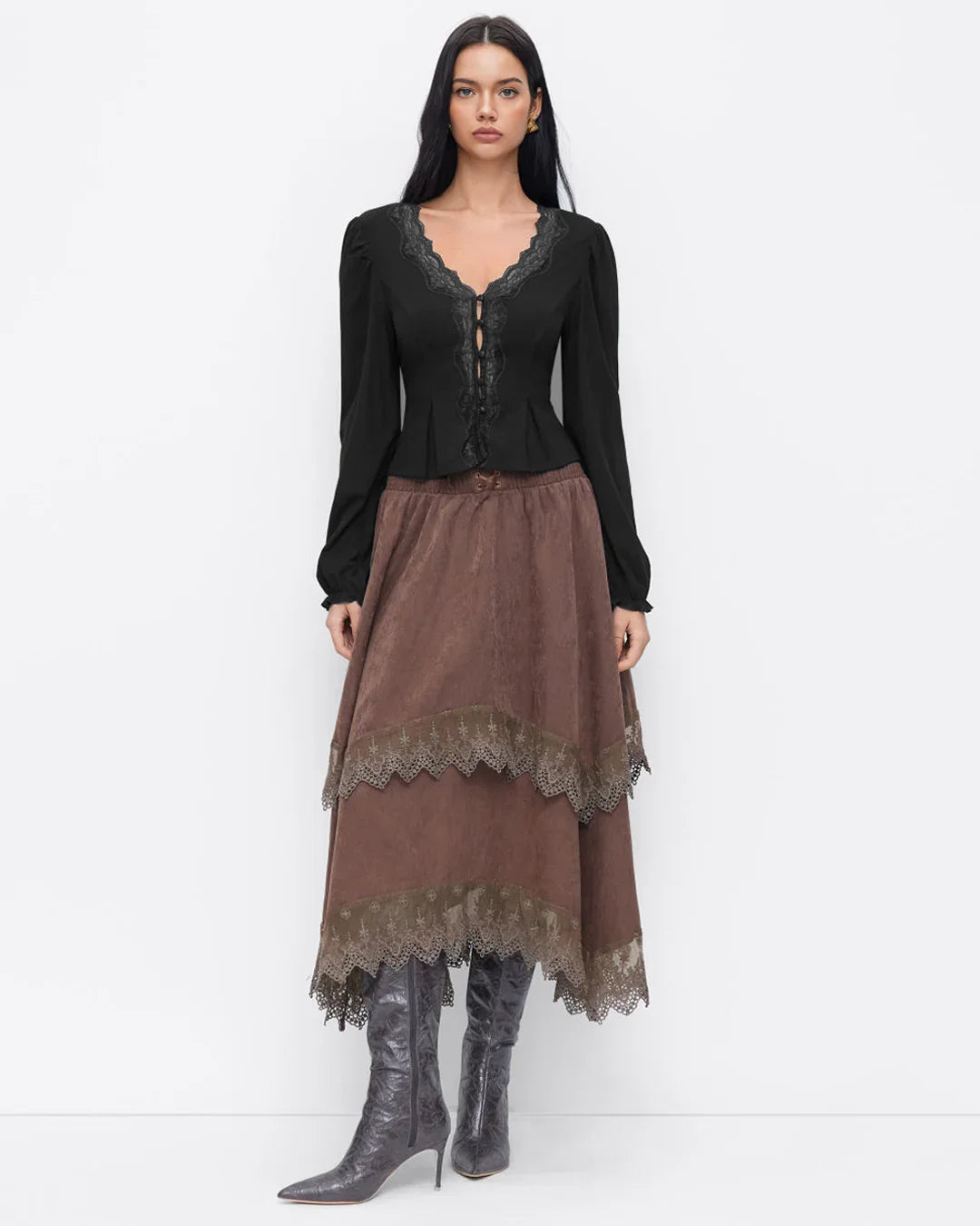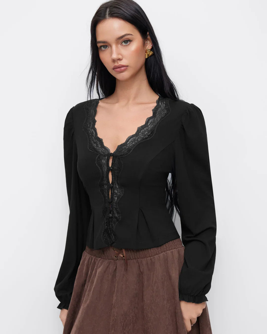 Perfect for dinner plans, casual outings, or even low-key party nights, it blends comfort with style. The fabric feels smooth with a gentle stretch, so you can move freely and stay comfortable for hours. Pair it with skirts, trousers, or denim for different moods. This V-neck long sleeve lace trim top gives you that effortless dressed-up vibe with minimal effort.