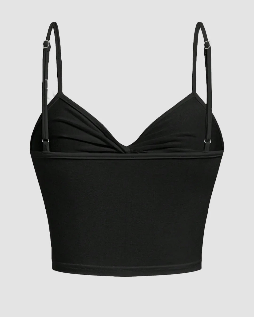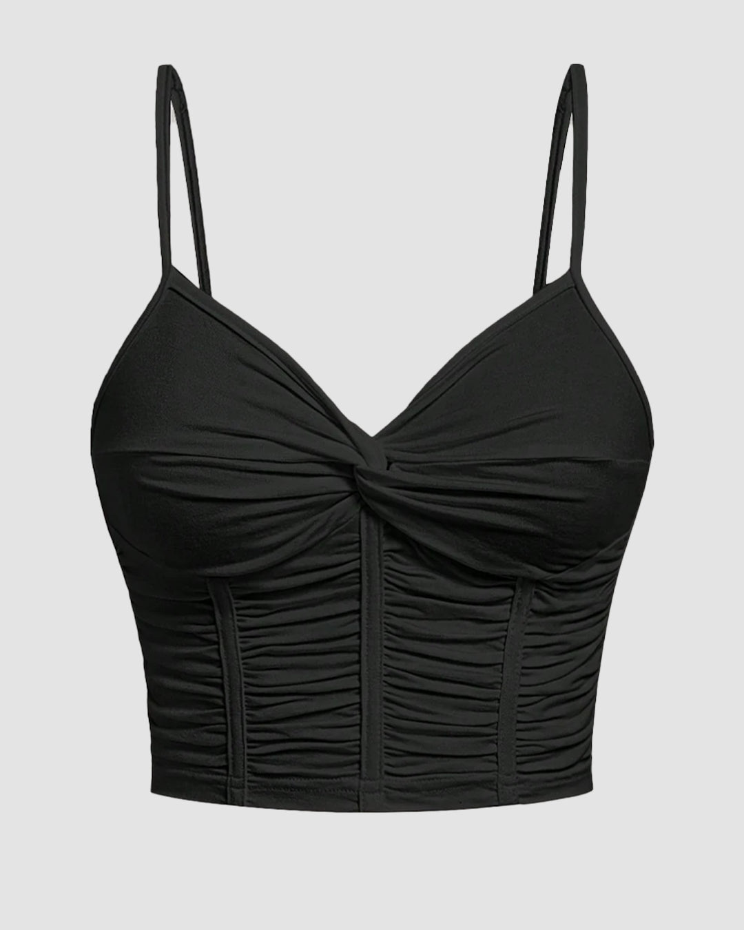 V Neck Twist Front Ruched Cami Top in Black
