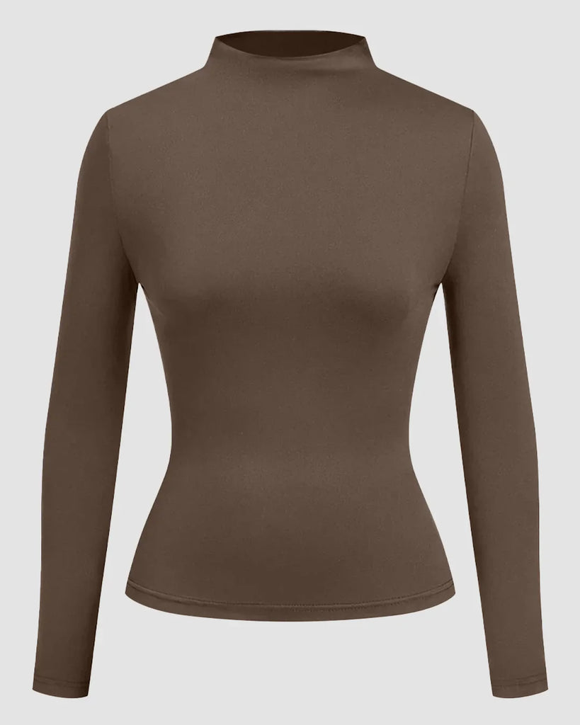 • Minimalist full-sleeve tops for women come in solid colors or soft floral patterns. They look great tucked into high-waisted trousers.