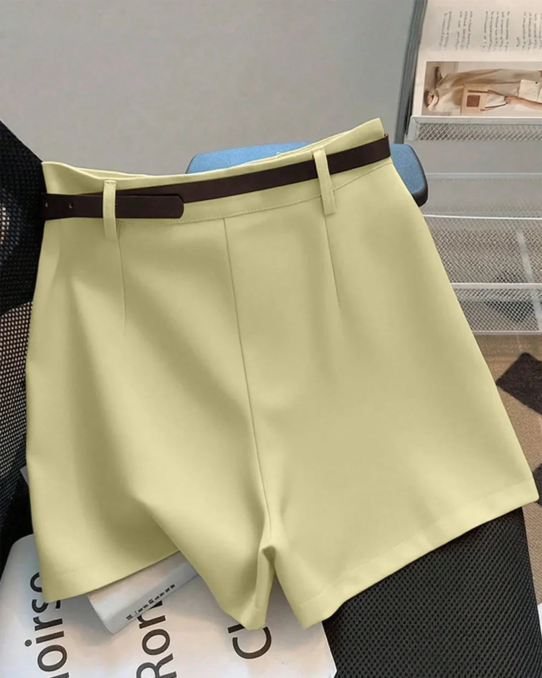 High-Waist Pleated Tailored Shorts Without Belt in French Vanilla