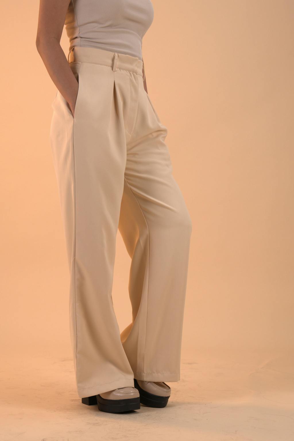 - The off-white shade pairs well with bold tops and neutral basics