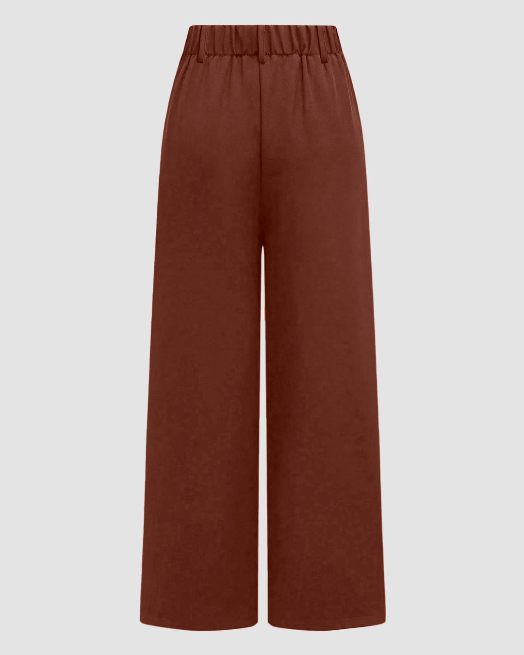 Wide Leg Pants Loose Straight Leg Trousers in Rust Brown combine effortless elegance with everyday comfort. Designed with a high-waisted fit and a relaxed wide-leg silhouette, these trousers create a flattering, elongated look while allowing easy movement. The structured waistband with button closure and subtle front pleats adds a polished touch, making them perfect for both professional and casual styling.