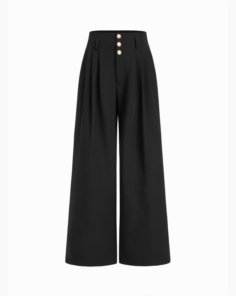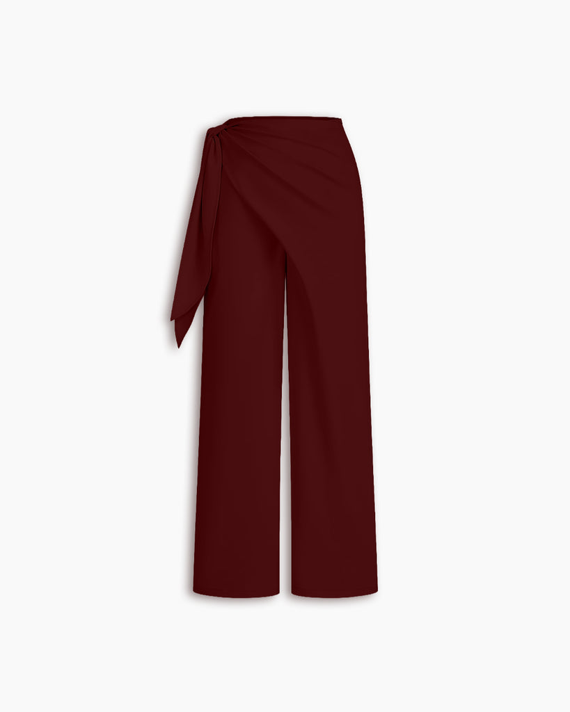 Pleated pants set styles in rich fabrics like satin or velvet are ideal. Pair with a corset-style blouse and heels.