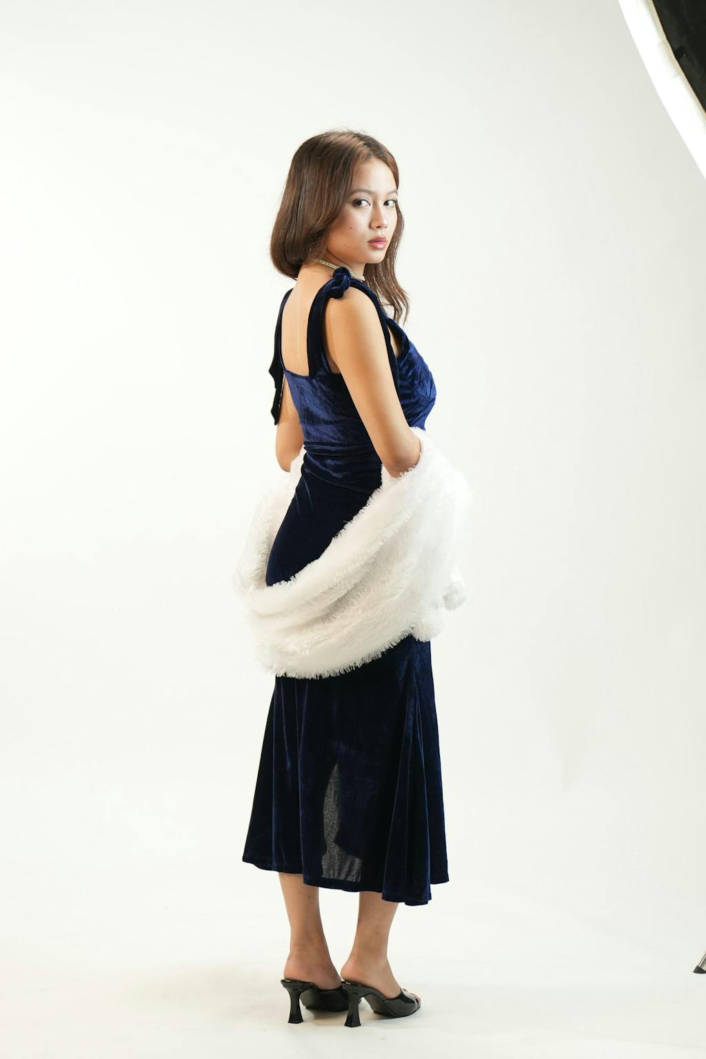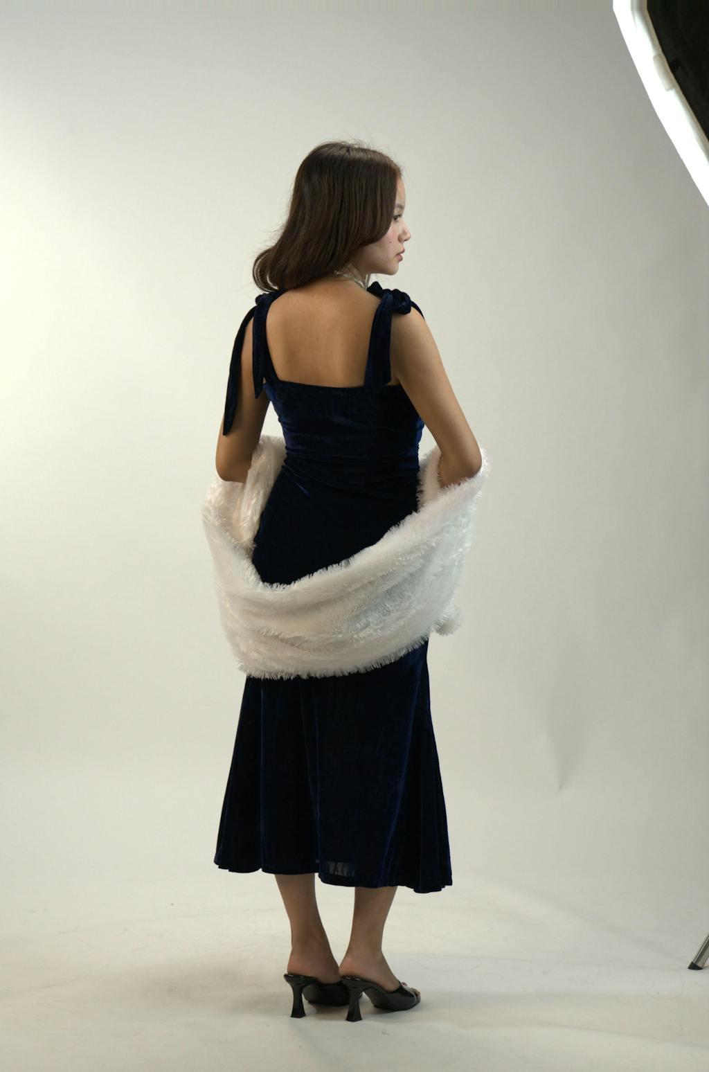 Made with a luxe velvet-polyester blend, this blue velvet dress offers a smooth feel and body-hugging comfort. The side slit adds movement and confidence to every step, while the deep navy shade keeps it effortlessly elegant. Add this blue velvet dress to your wardrobe for those moments when you want all eyes on you.