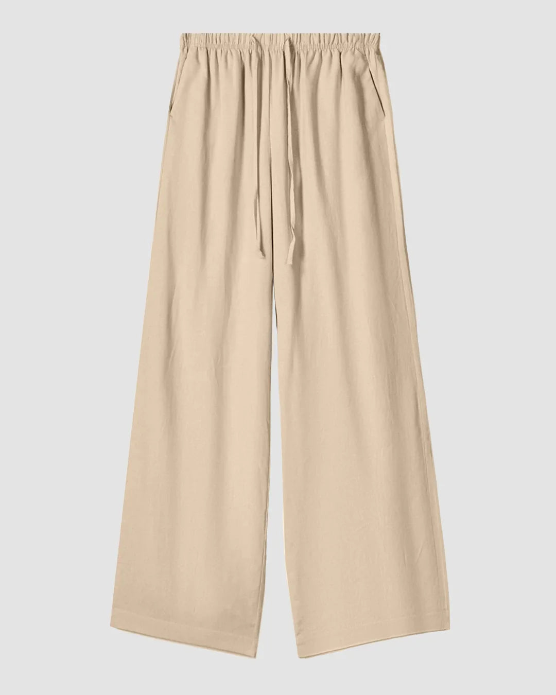 High-Rise Drawstring Wide-Leg Trousers in Light Khaki