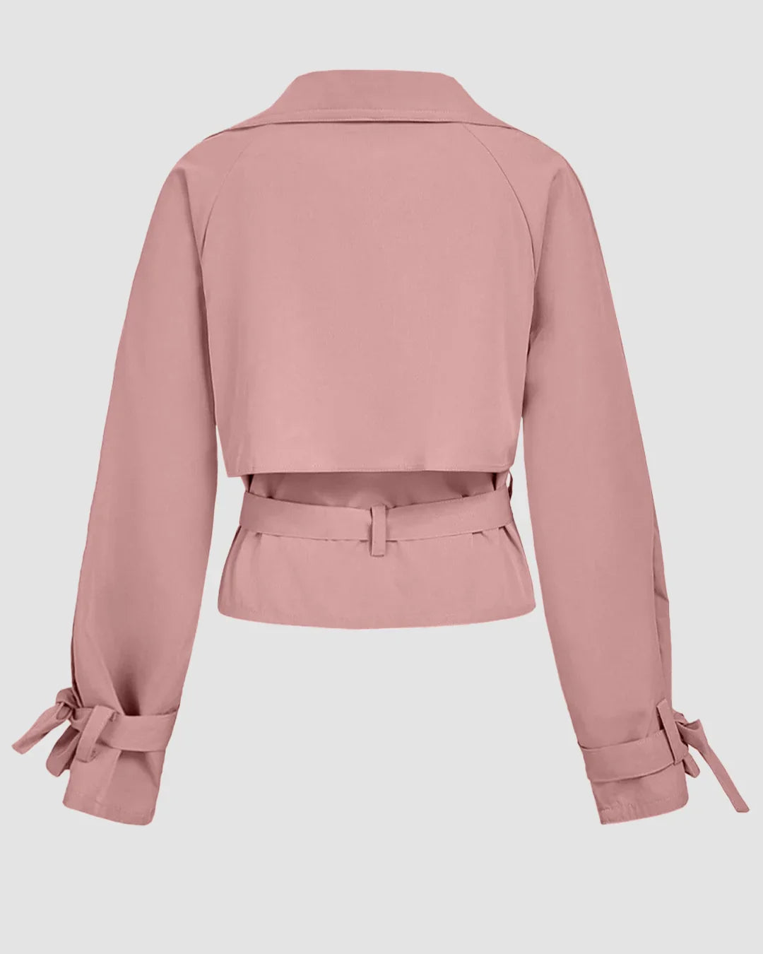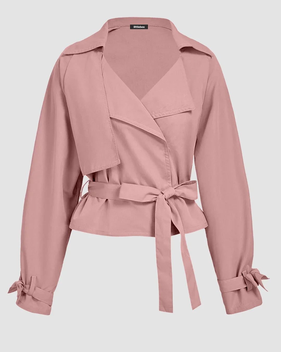 Belted Lapel Collar Cropped Waistcoat in Pink