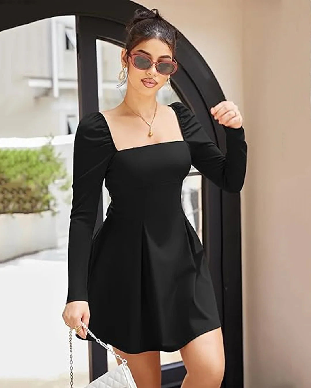 Black Square Neck Sleeveless Fit & Flare Mini Dress