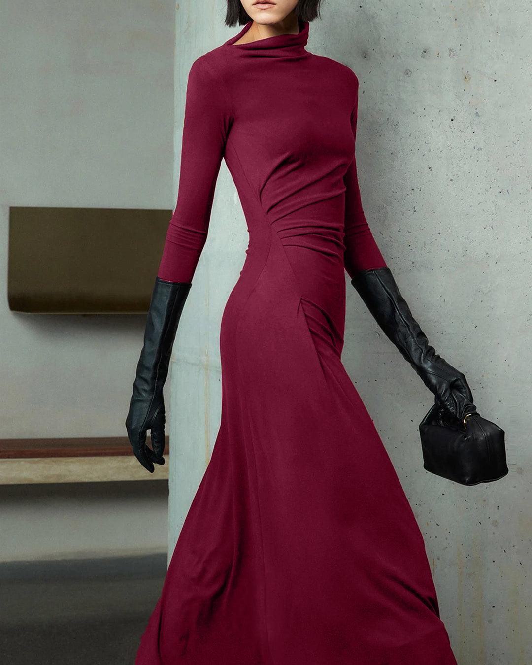 Bodycon Asymmetrical Neck Long Sleeve Ruched Maxi Dress