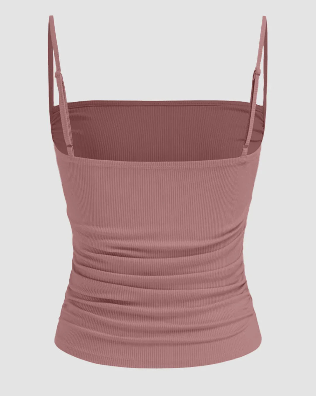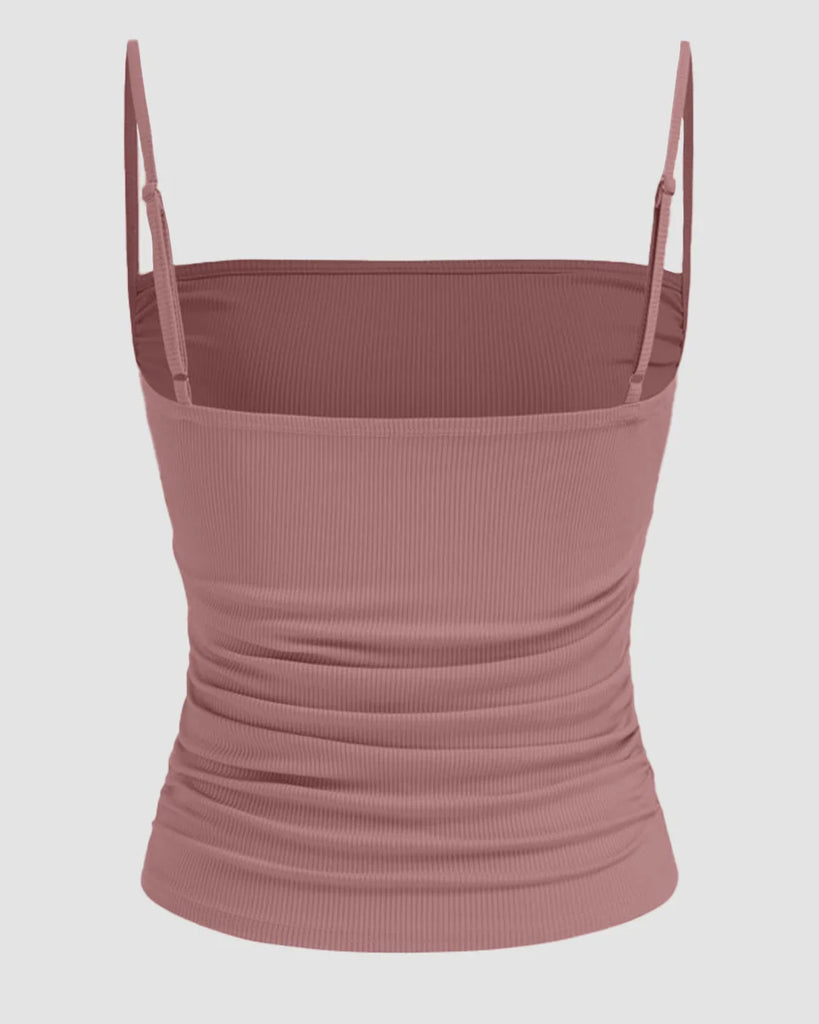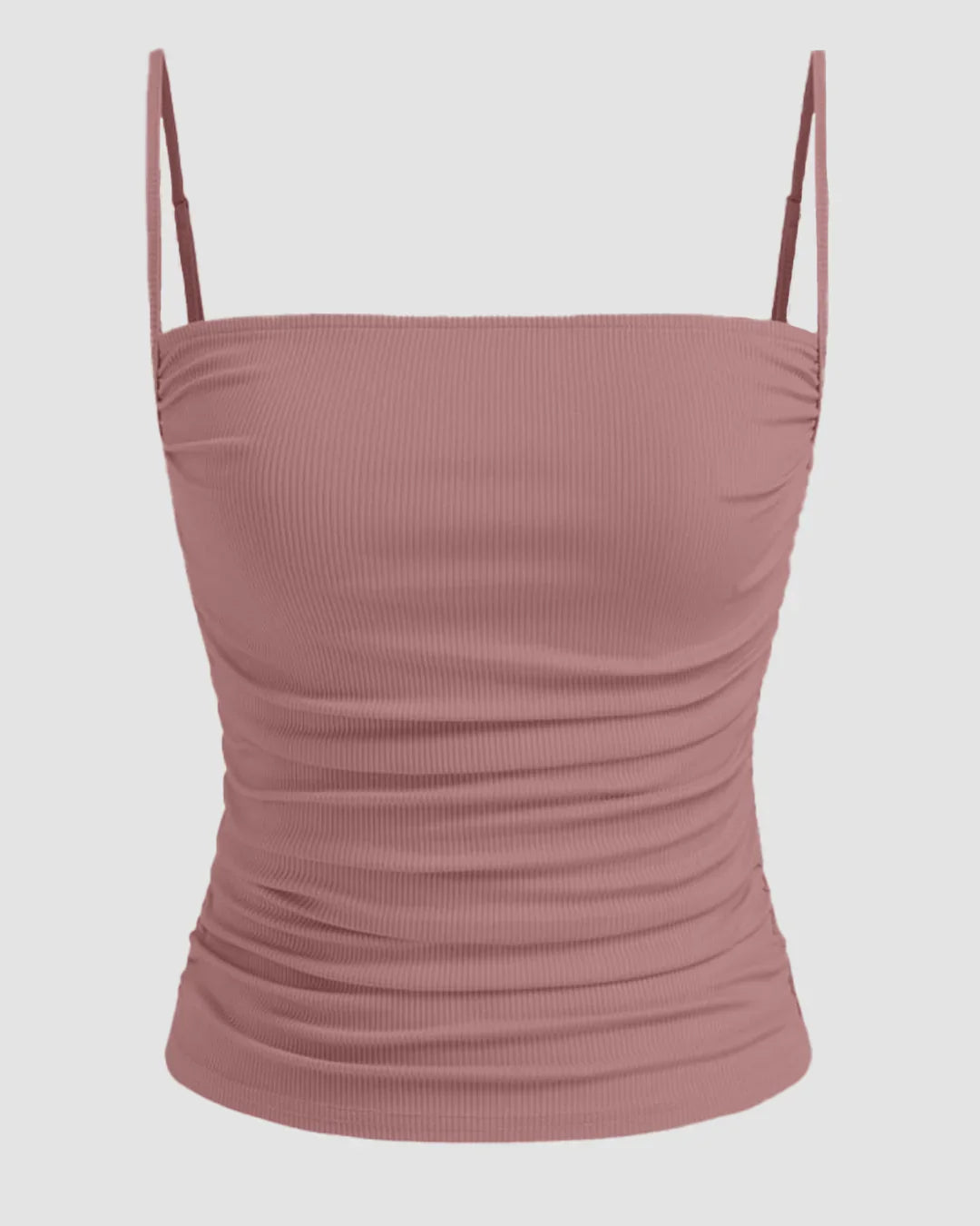 Dusty Pink Ruched Spaghetti Strap Sleeveless Top