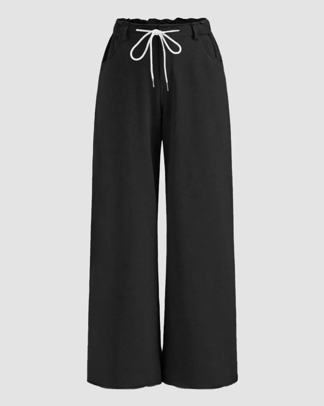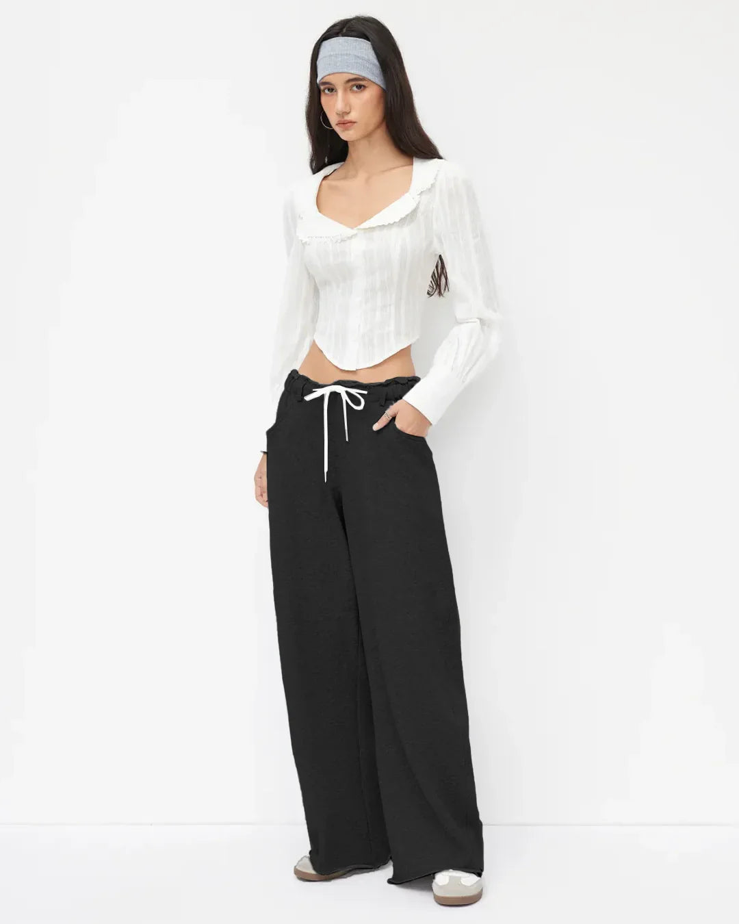 Low Rise Drawstring Pocket Straight Leg Sweatpants in Black come in a relaxed straight fit with a soft low-rise waist and adjustable drawstring. These Sweatpants in Black have pockets on both sides, giving them a practical and easy everyday feel. The straight leg shape keeps the look clean and flattering for casual days.