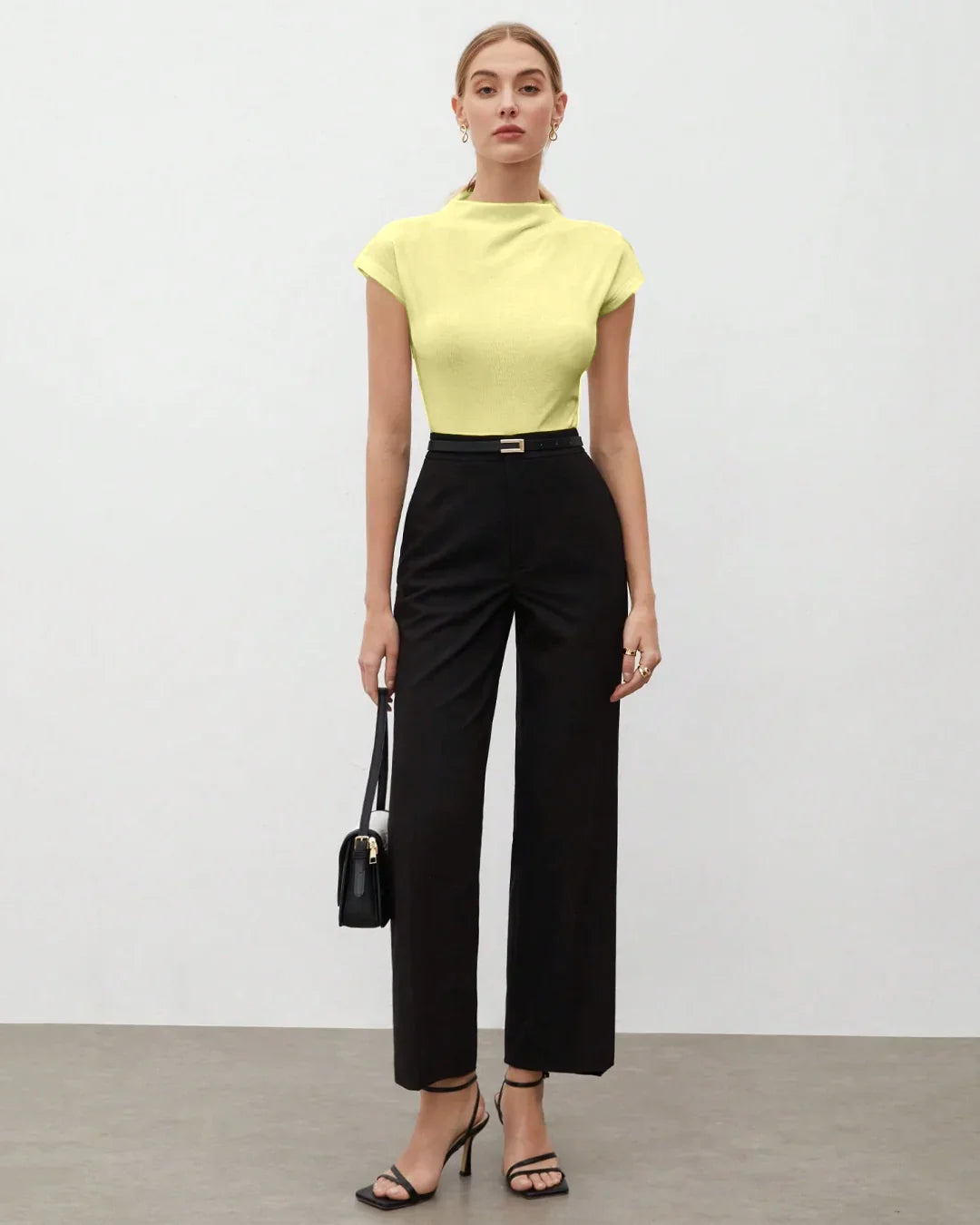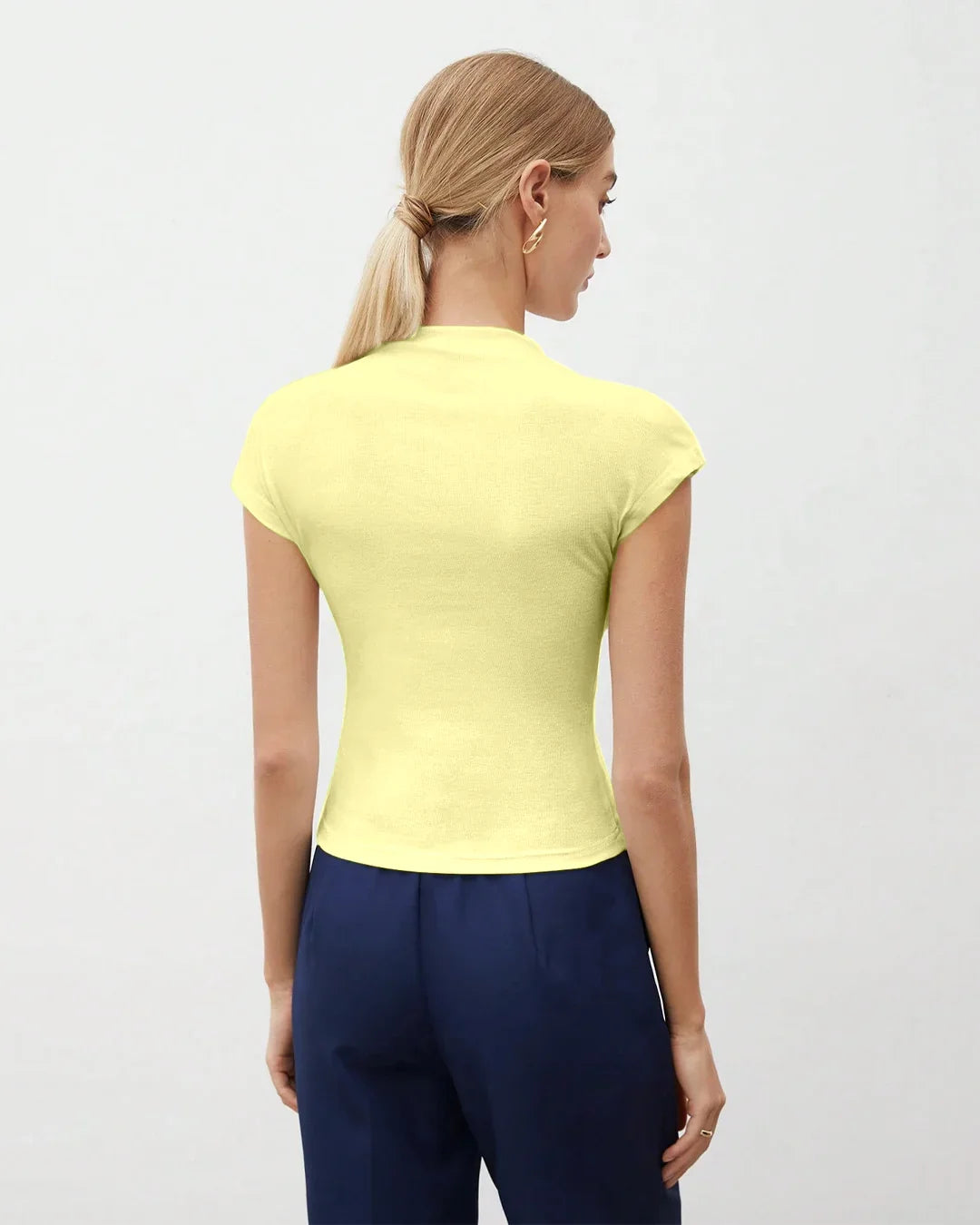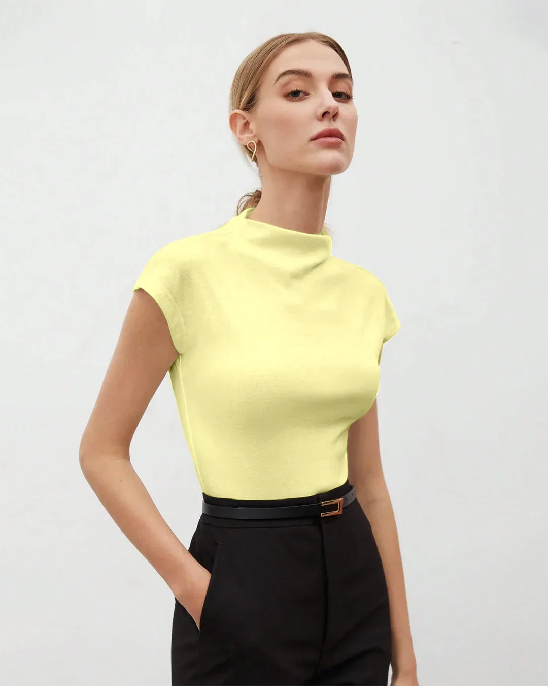 Sleek and minimal, this cap sleeve top in vanilla is designed to elevate your everyday style. Featuring a mock neck and tailored fit, it creates a clean, polished silhouette that works perfectly for both casual and formal looks. Chic yet versatile, this cap sleeve top is an easy go-to for effortless dressing.
